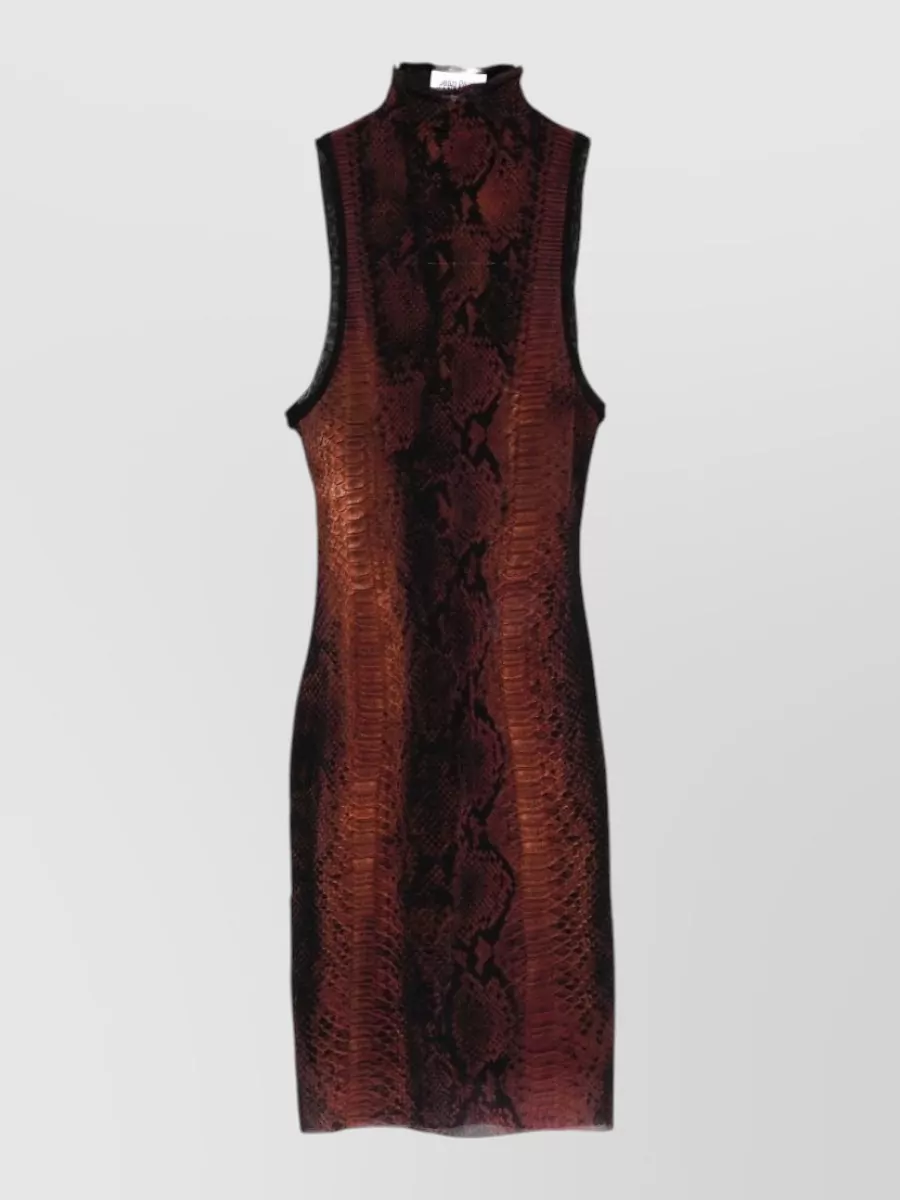 Jean Paul Gaultier mesh high neck sleeveless printed midi dress