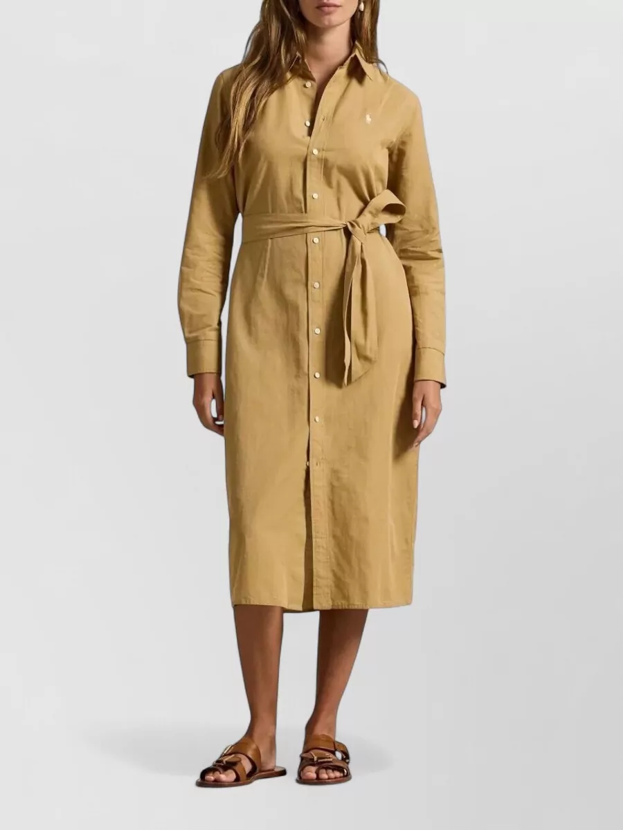 Polo Ralph Lauren linen cotton shirt dress belted waist midi