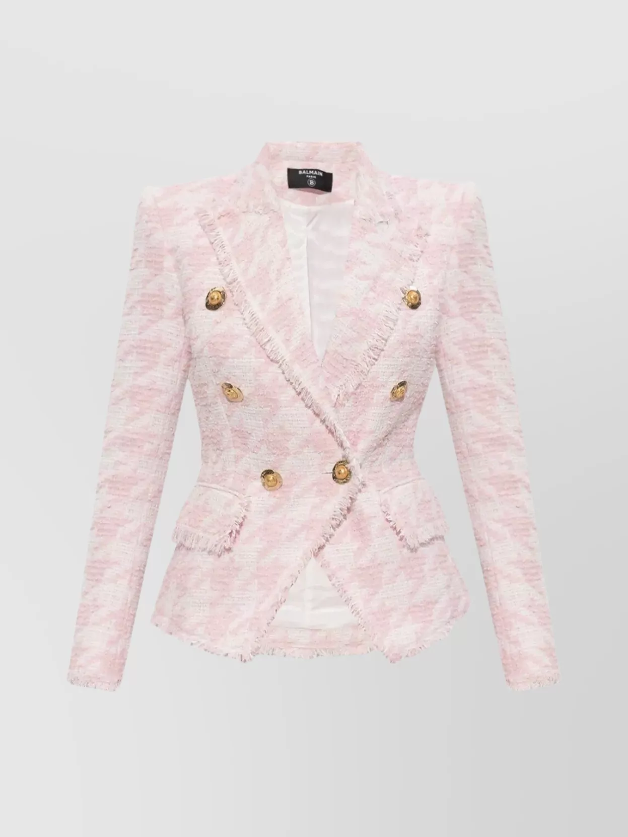 Balmain tweed jacket with frayed edges and gold-tone buttons