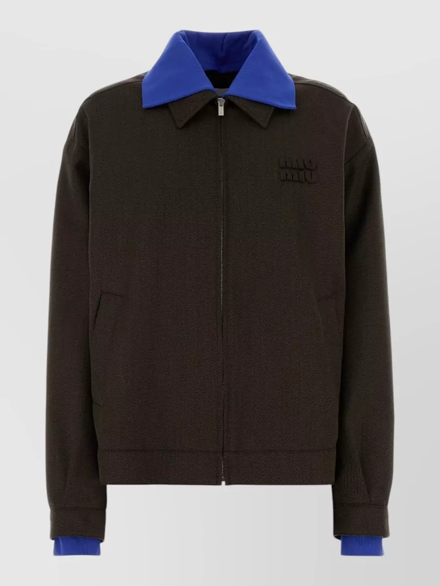 Miu Miu tech fabric collared windbreaker jacket long sleeves