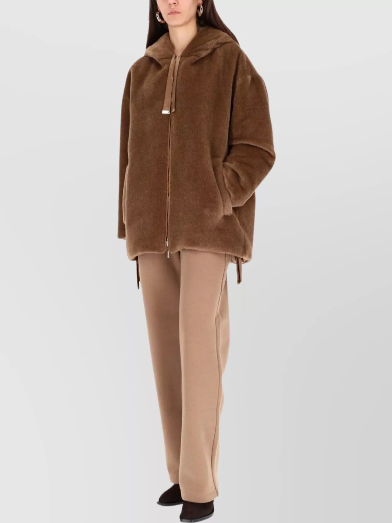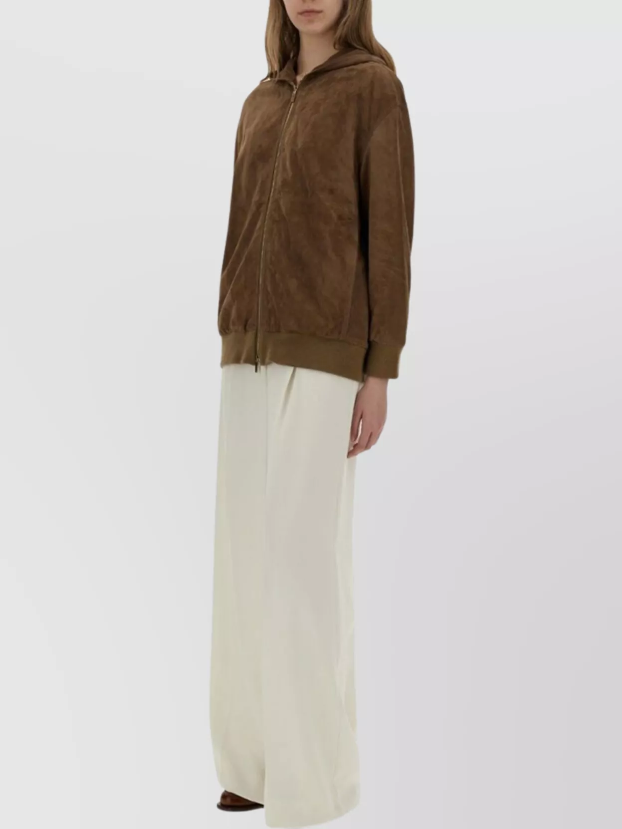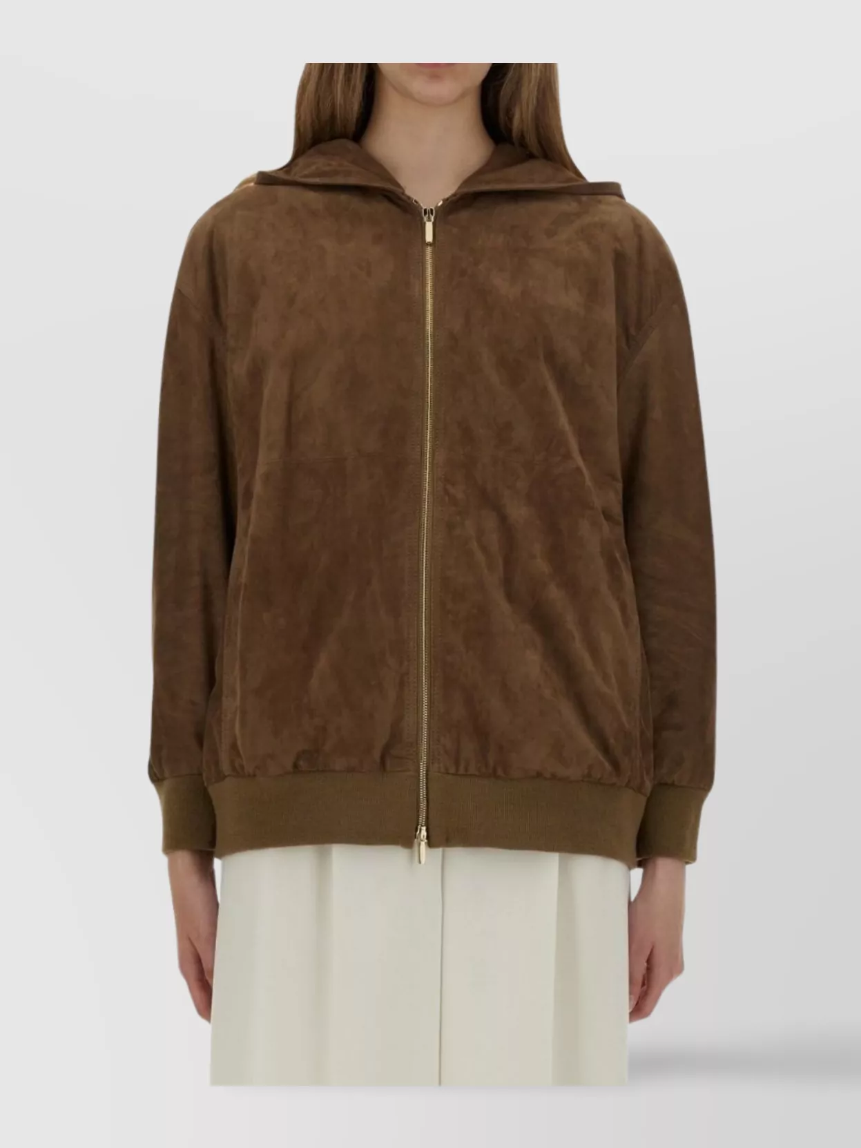S Max Mara hooded leather jacket with ribbed cuffs and hem
