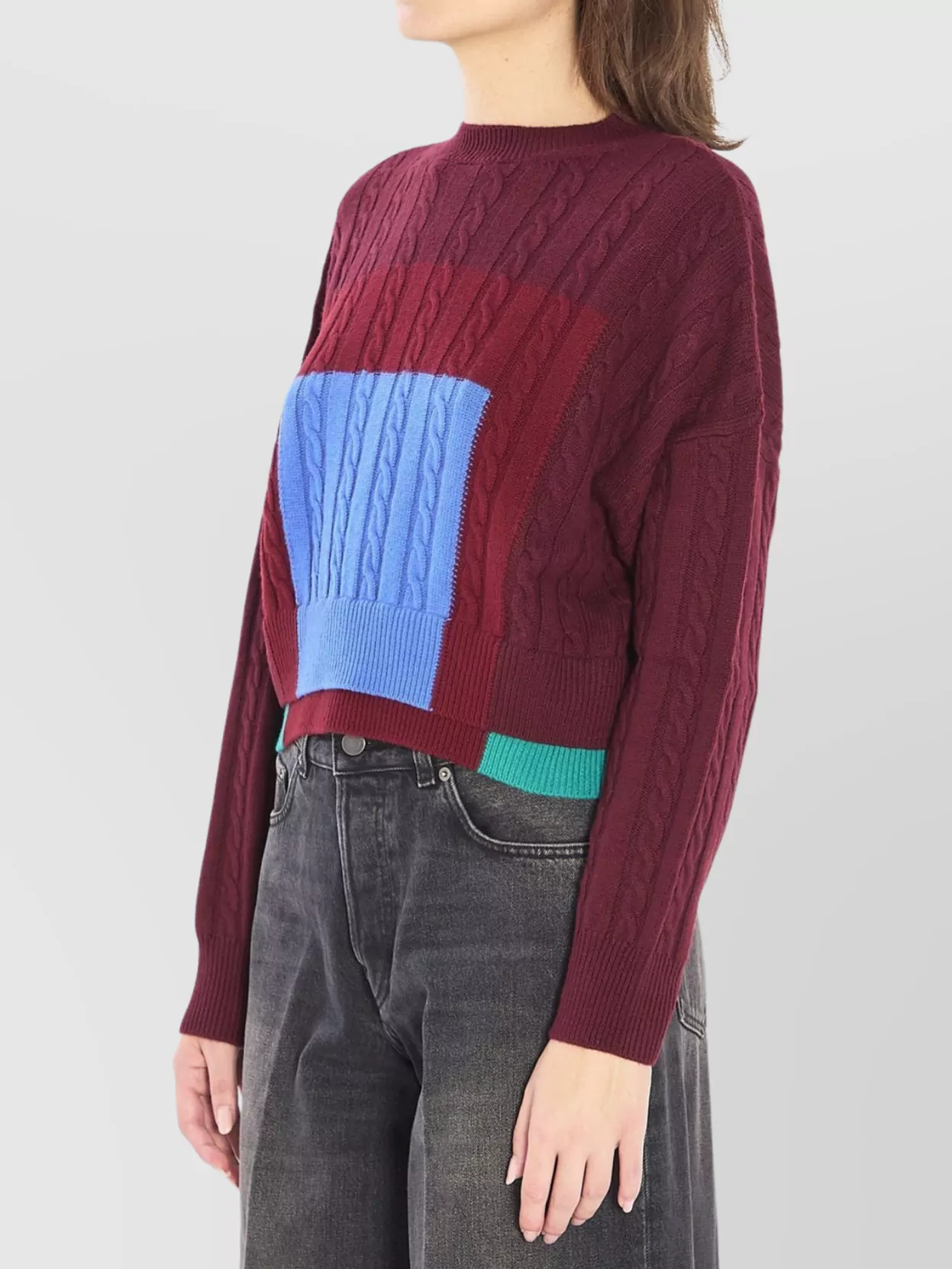 cropped sweater with geometric cable knit design