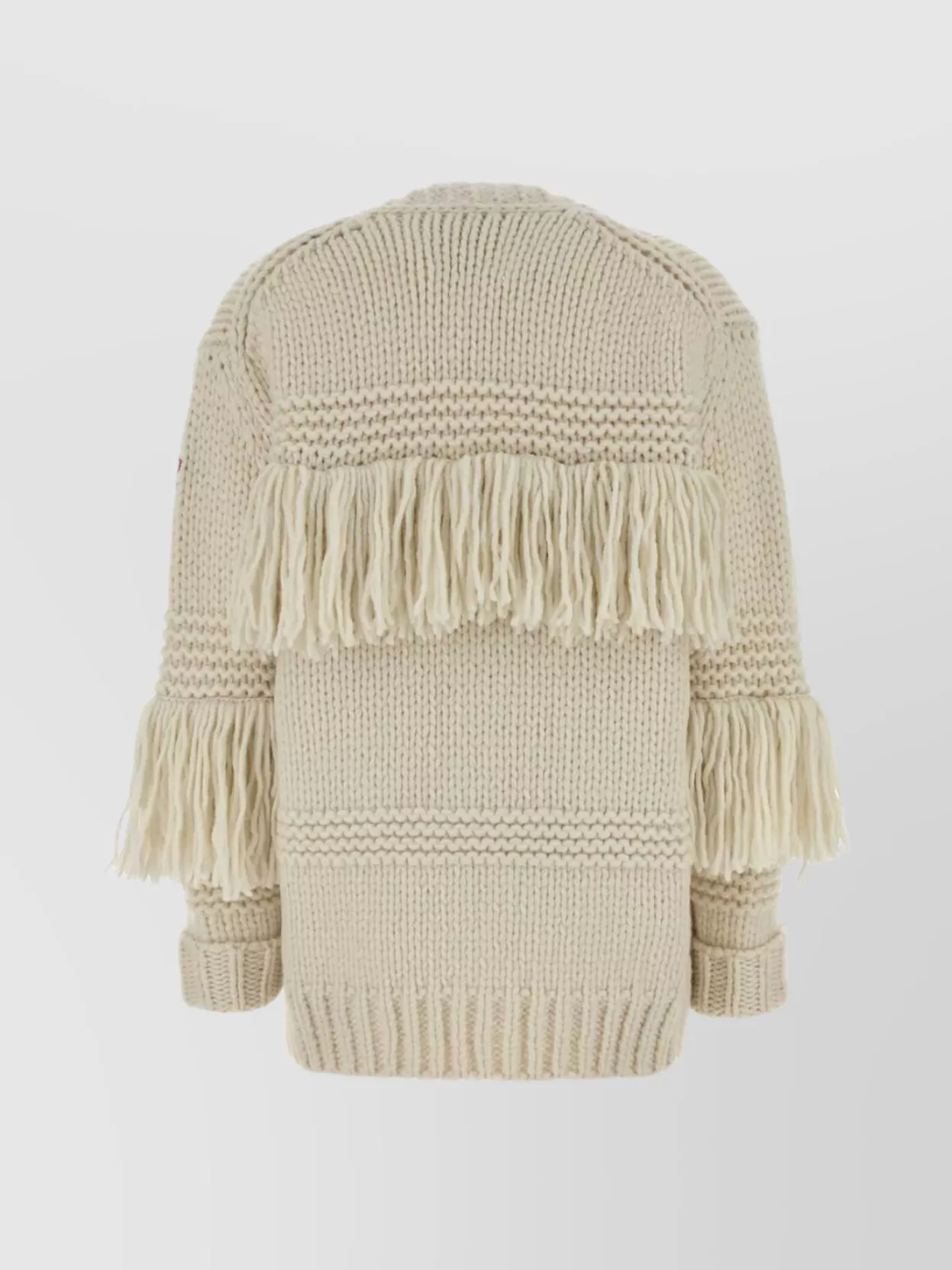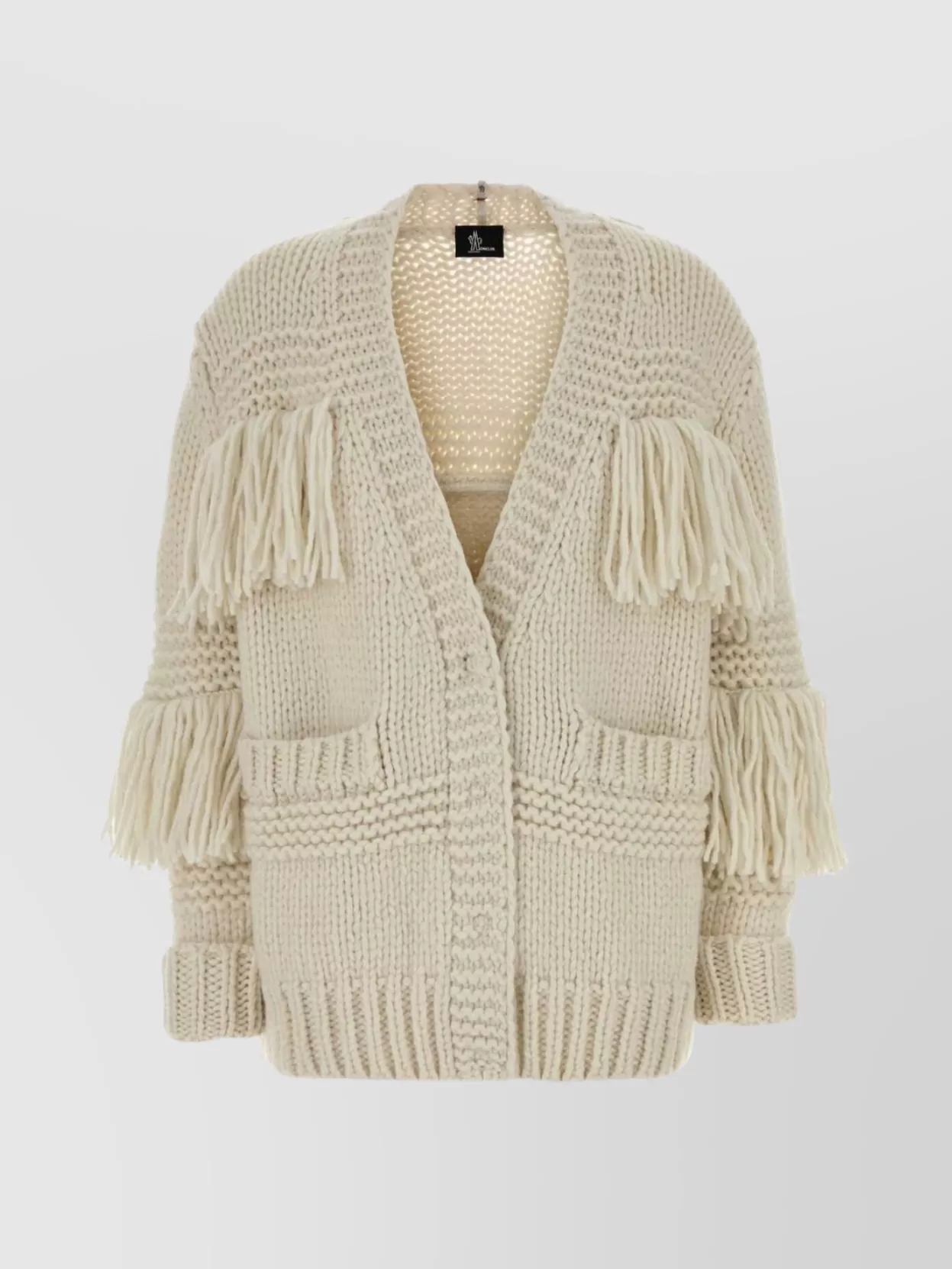Moncler Grenoble chunky knit cardigan with fringe and pockets