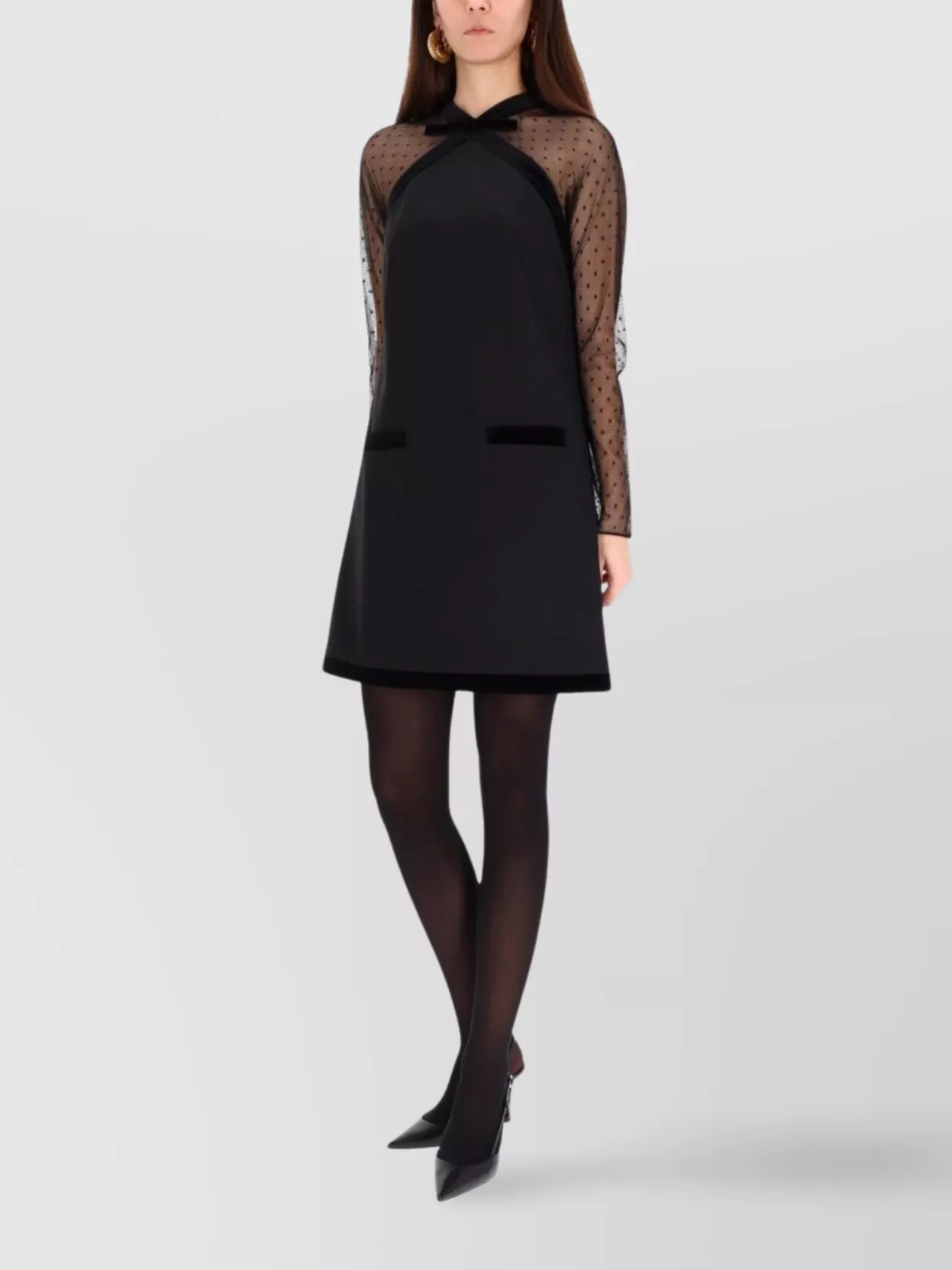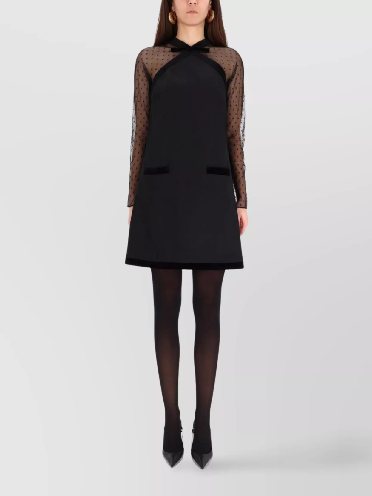Patou sheer lace midi dress with long sleeves