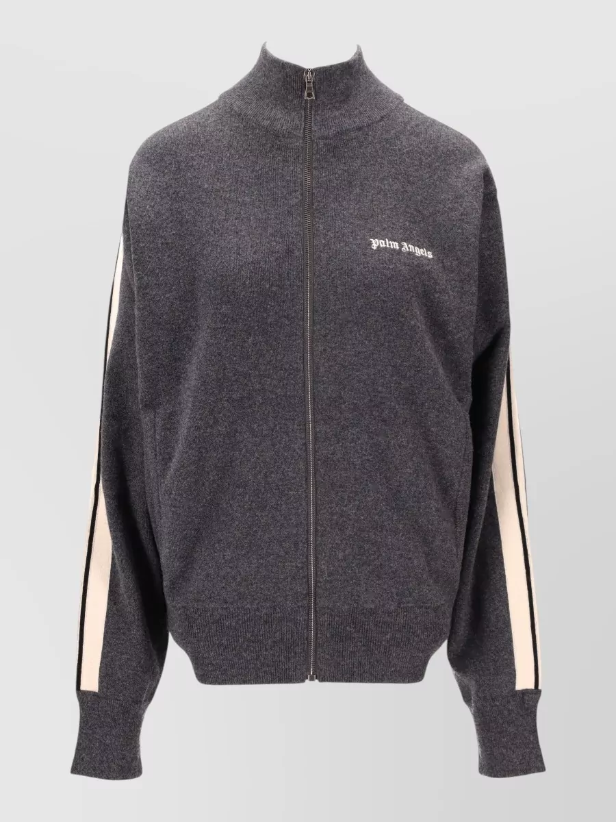 Discover more PALM ANGELS Knitwear PALM ANGELS Clothing KnitwearFits as a regular knit jacket through the shoulders and body, with a high collar and ribbed cuffs and hem for a neat, secure finish