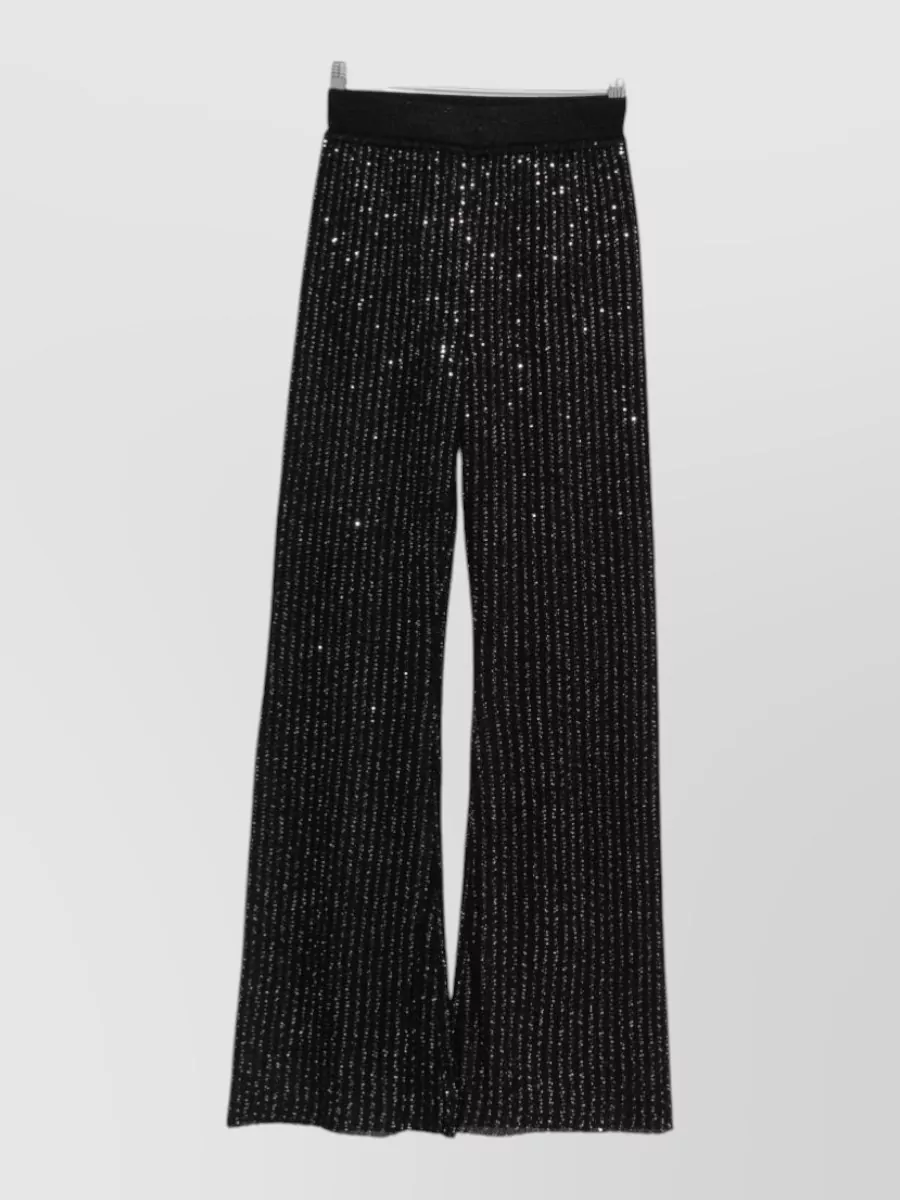 Flared wide leg ribbed glitter sheer trousers
