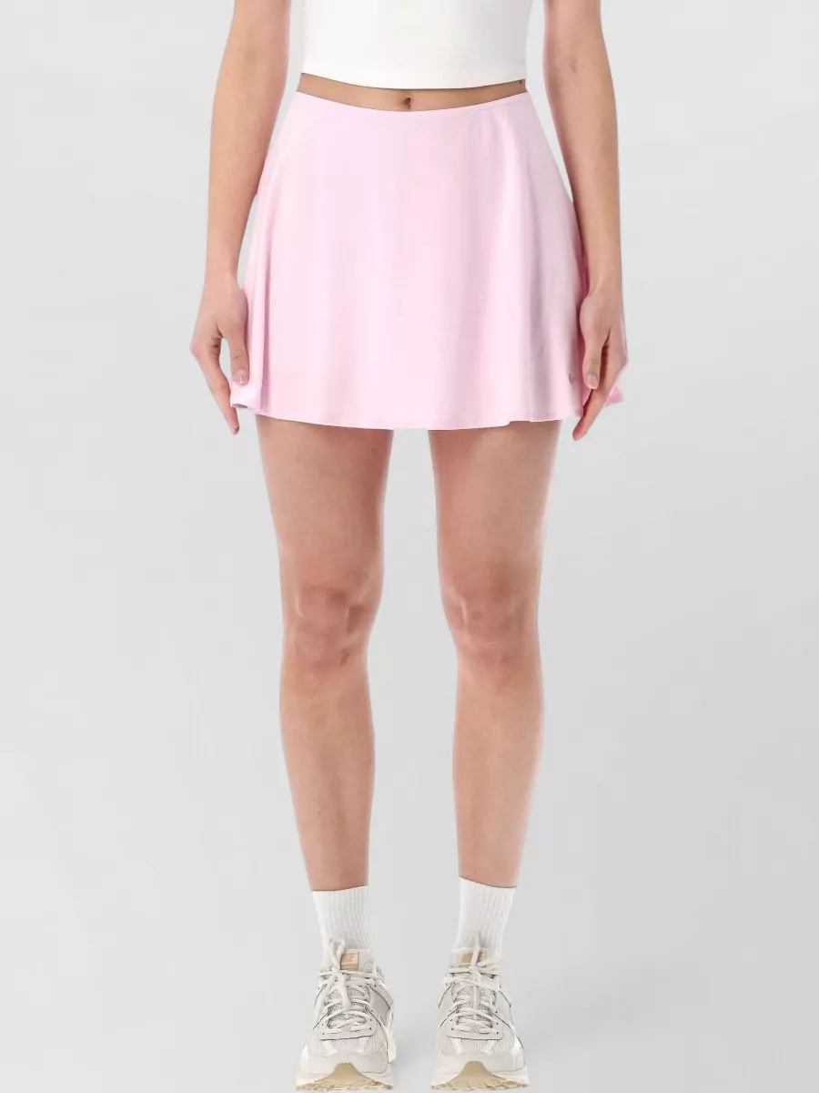 Sits at the waist with an elasticated waistband and flared mini-length hem that skims away from the hips