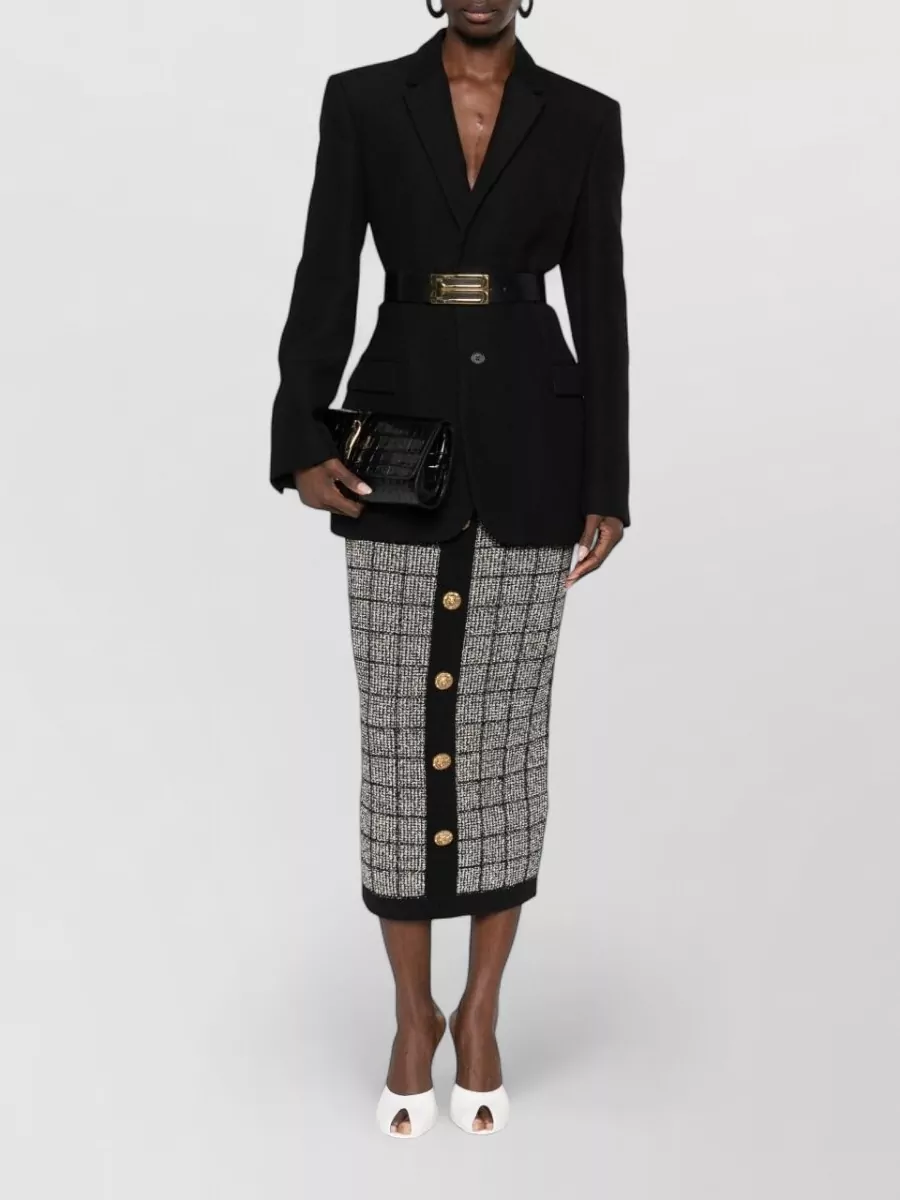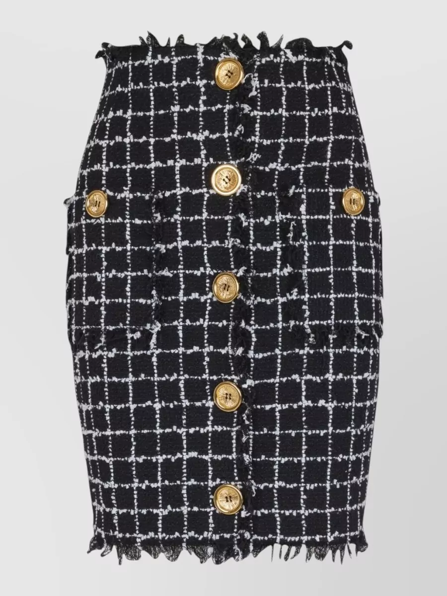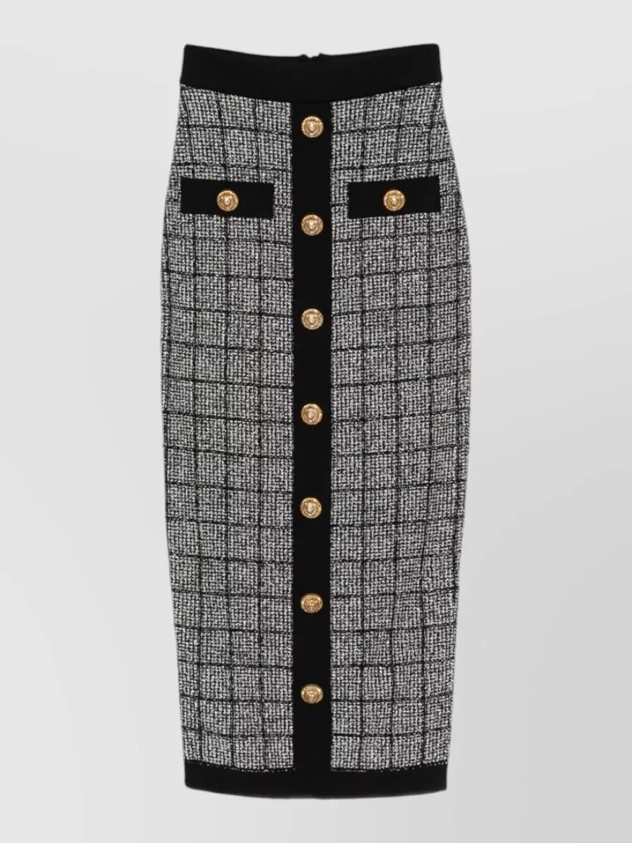 Balmain ribbed knee-length fitted skirt with decorative buttons