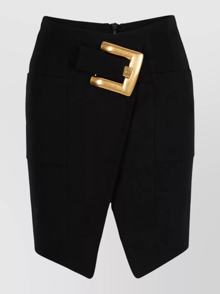 Balmain high-waisted ribbed mini skirt with gold buttons