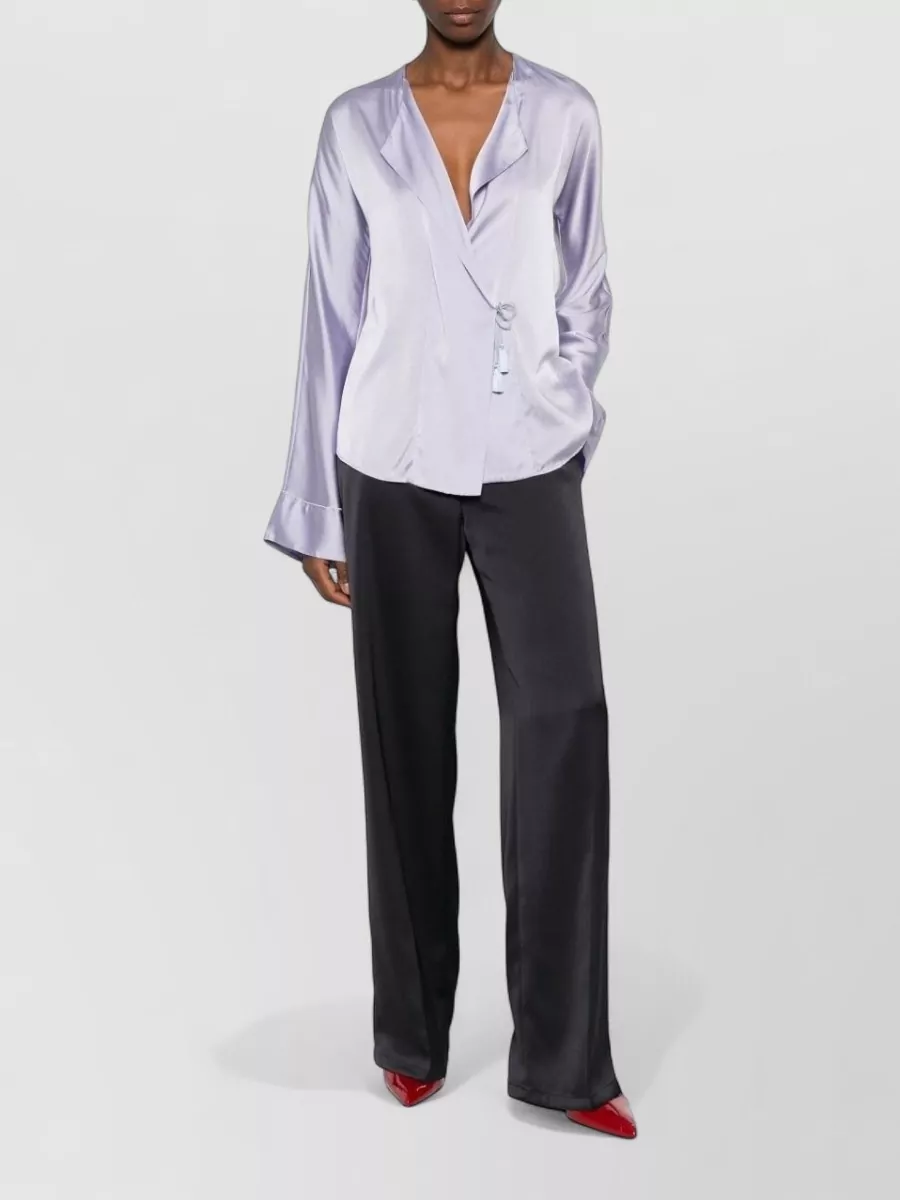 silk satin wrap shirt tassel detail