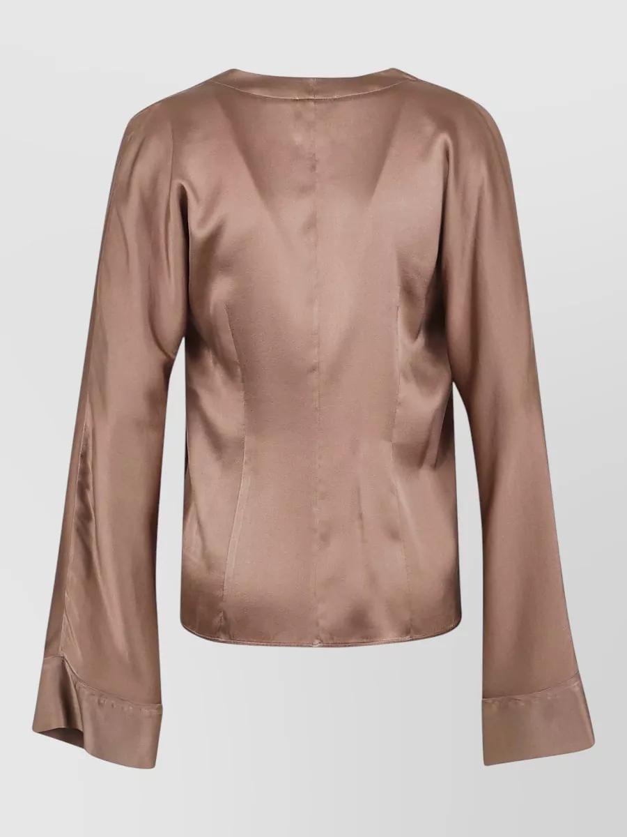 luxurious long sleeve silk collared top