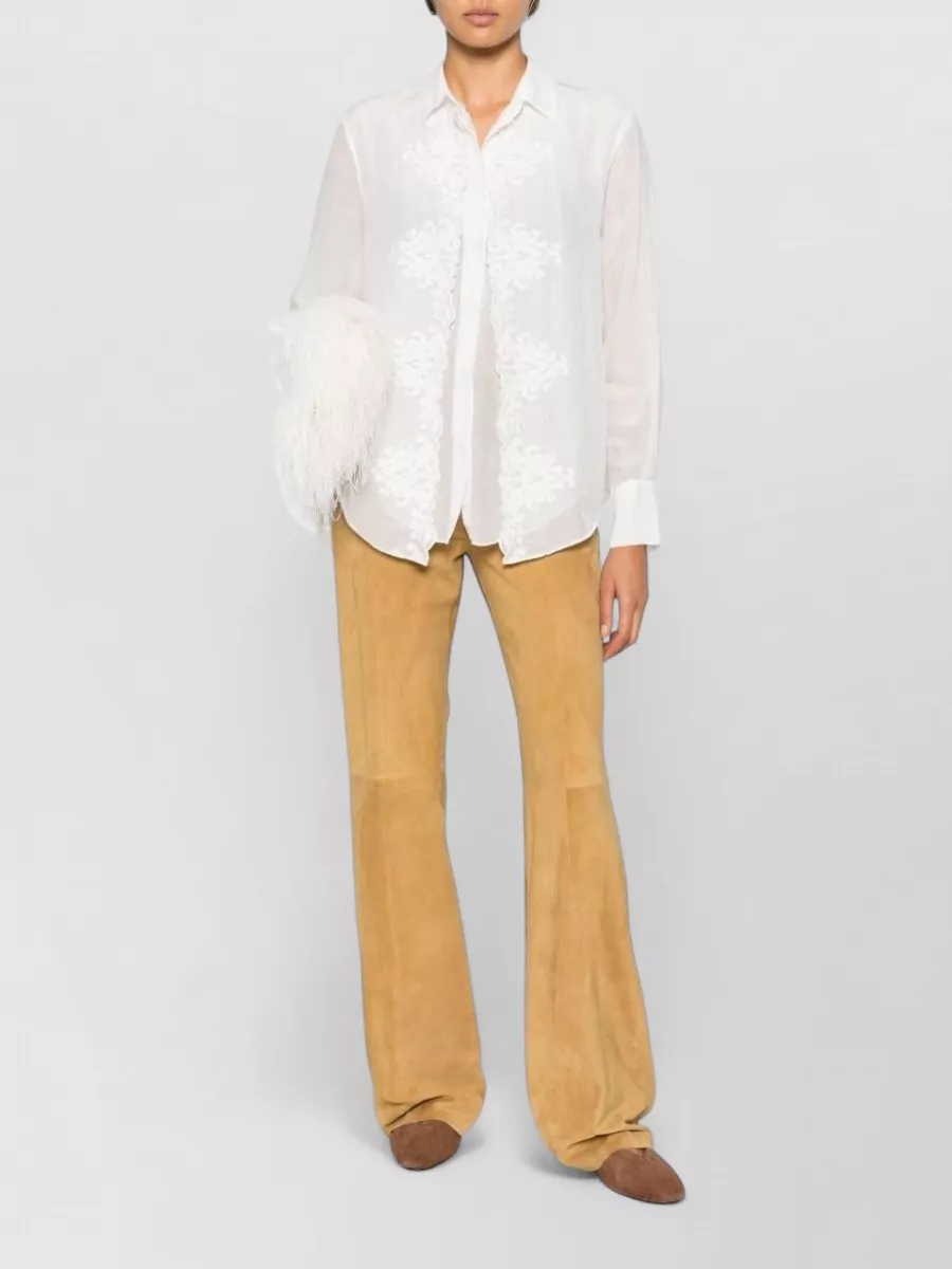 long sleeve sheer shirt embroidered design
