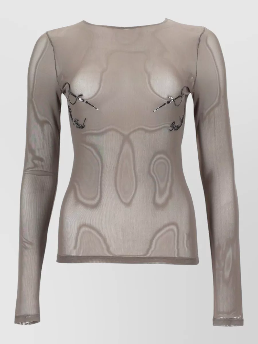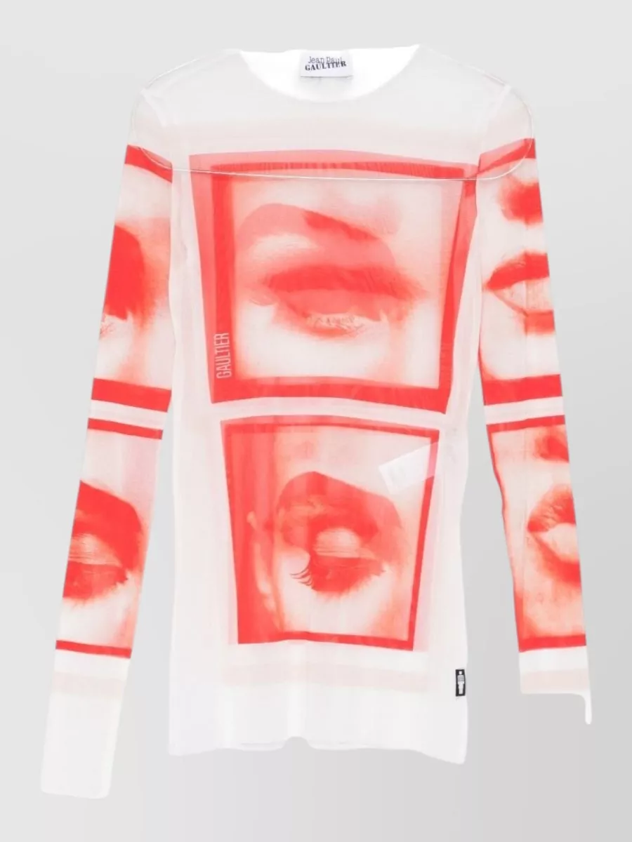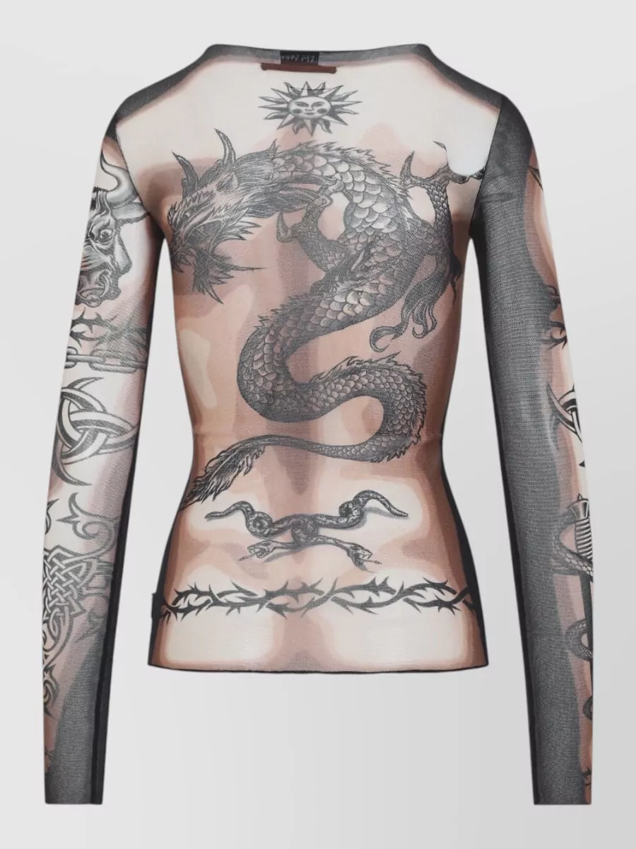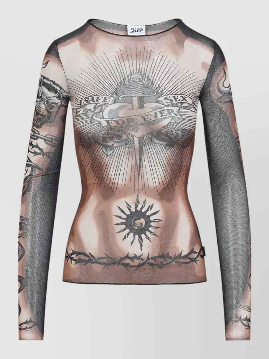 Jean Paul Gaultier mesh printed long-sleeve crew-neck top