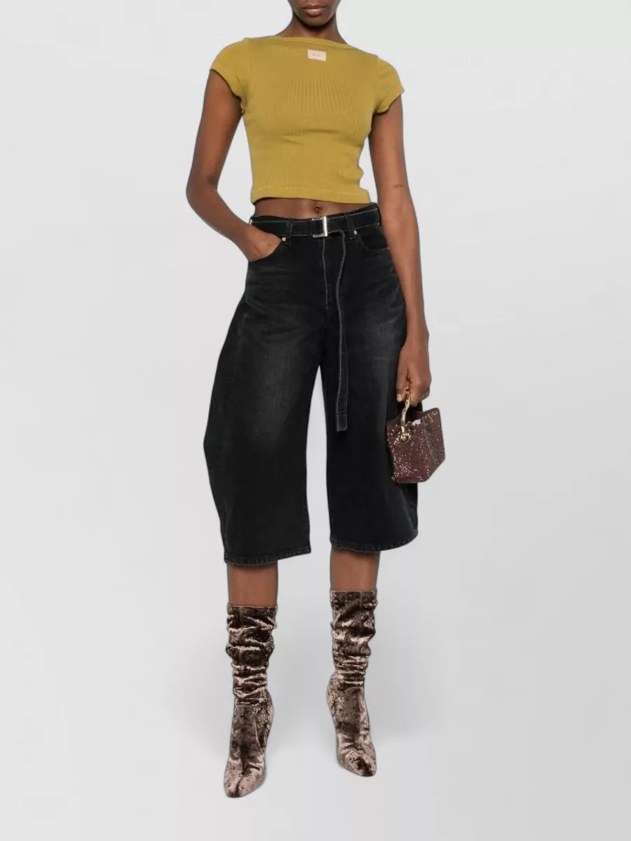 cotton ribbed slim-fit cropped short-sleeve t-shirt