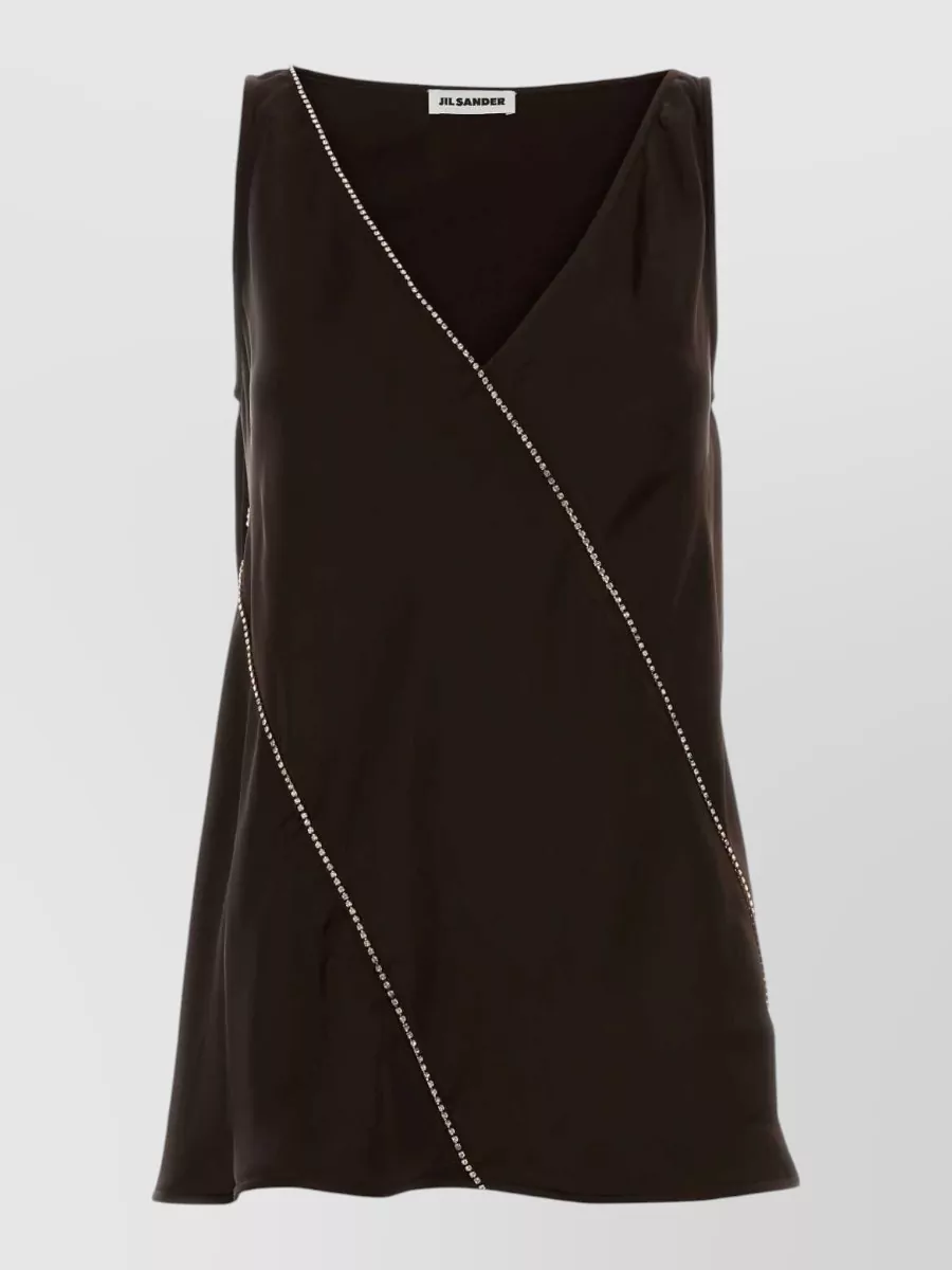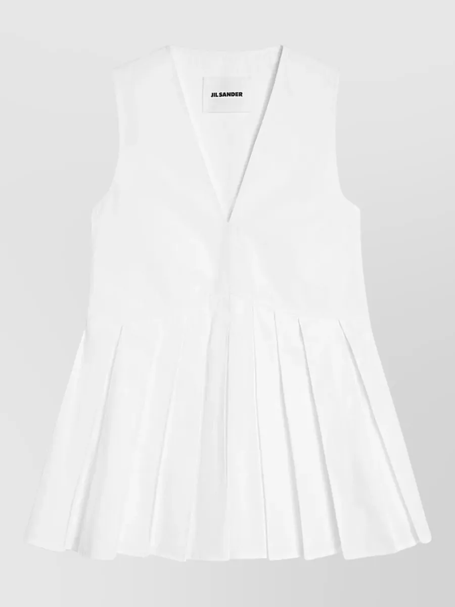 Jil Sander sleeveless v neck top flared hem pleated
