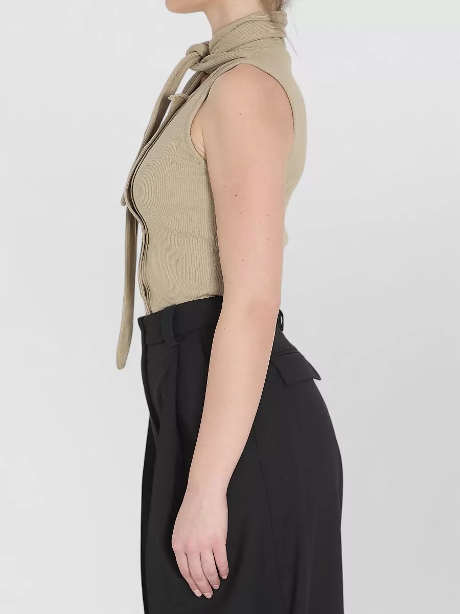 Lemaire asymmetrical rib knit bow neck top