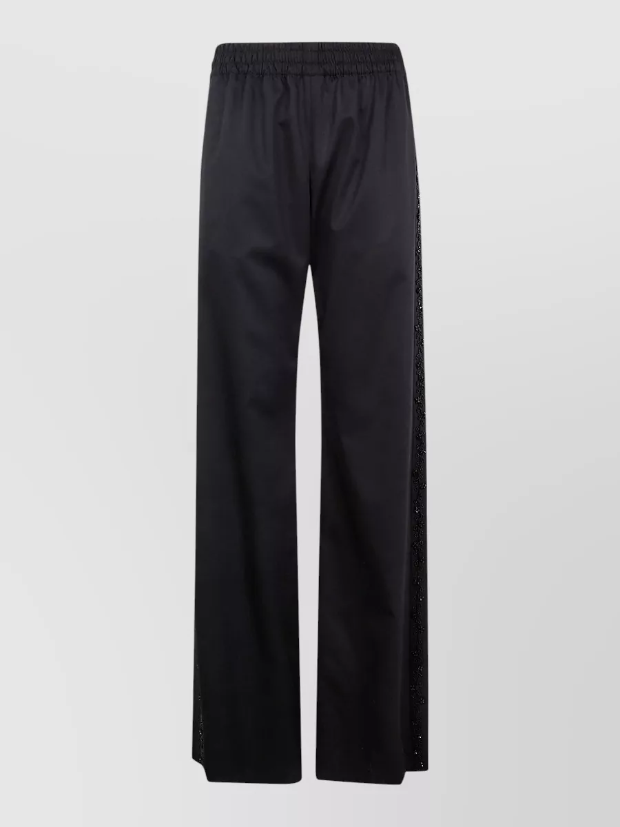 polyester joggers with elastic waistband and wide leg