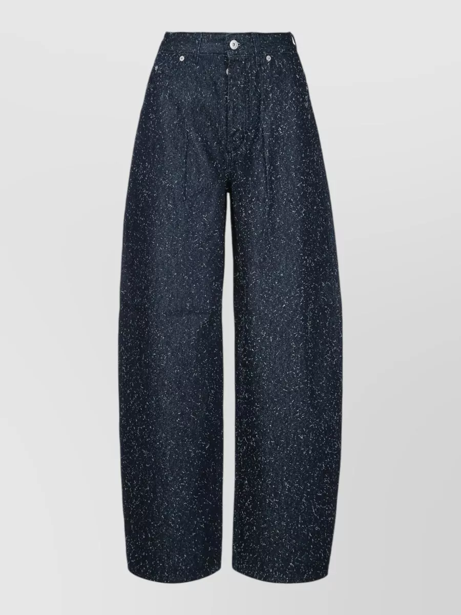 denim high-rise curved-leg wide-leg trousers