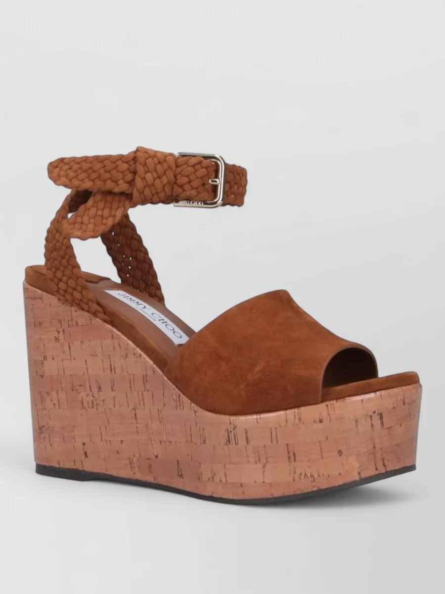 Jimmy Choo leather raffia wedge sandals