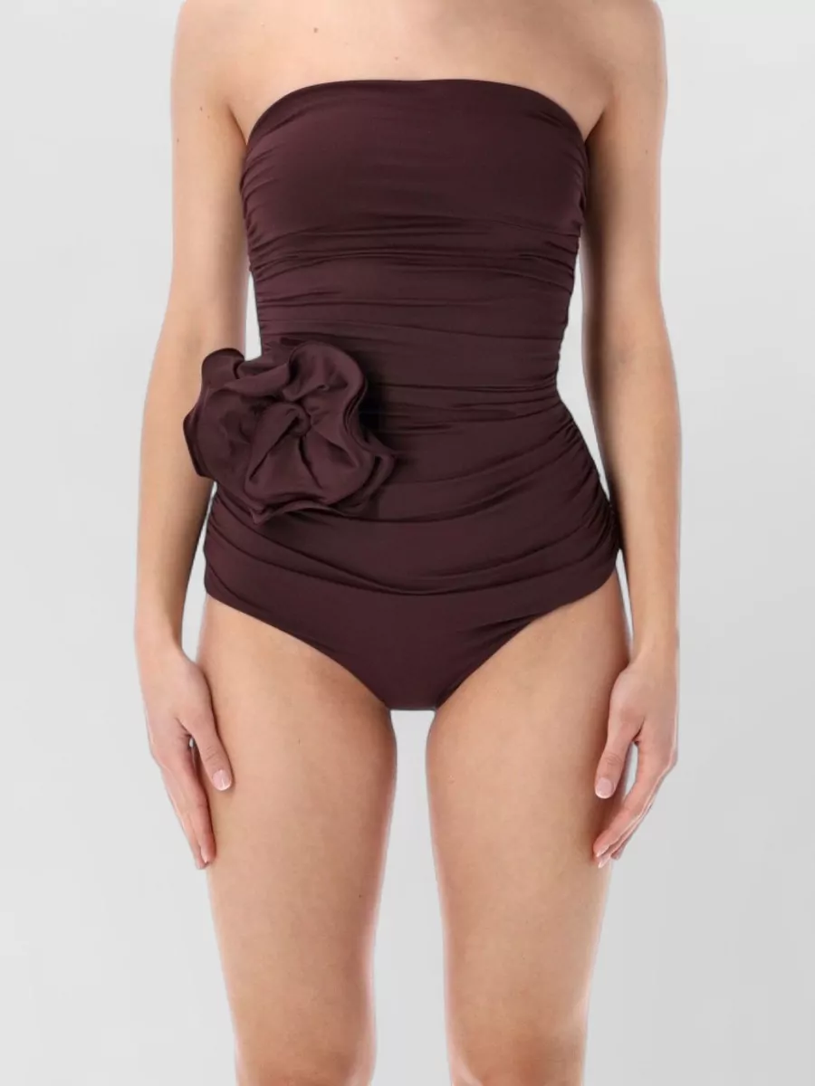 Magda Butrym strapless swimsuit draped silhouette flower detail
