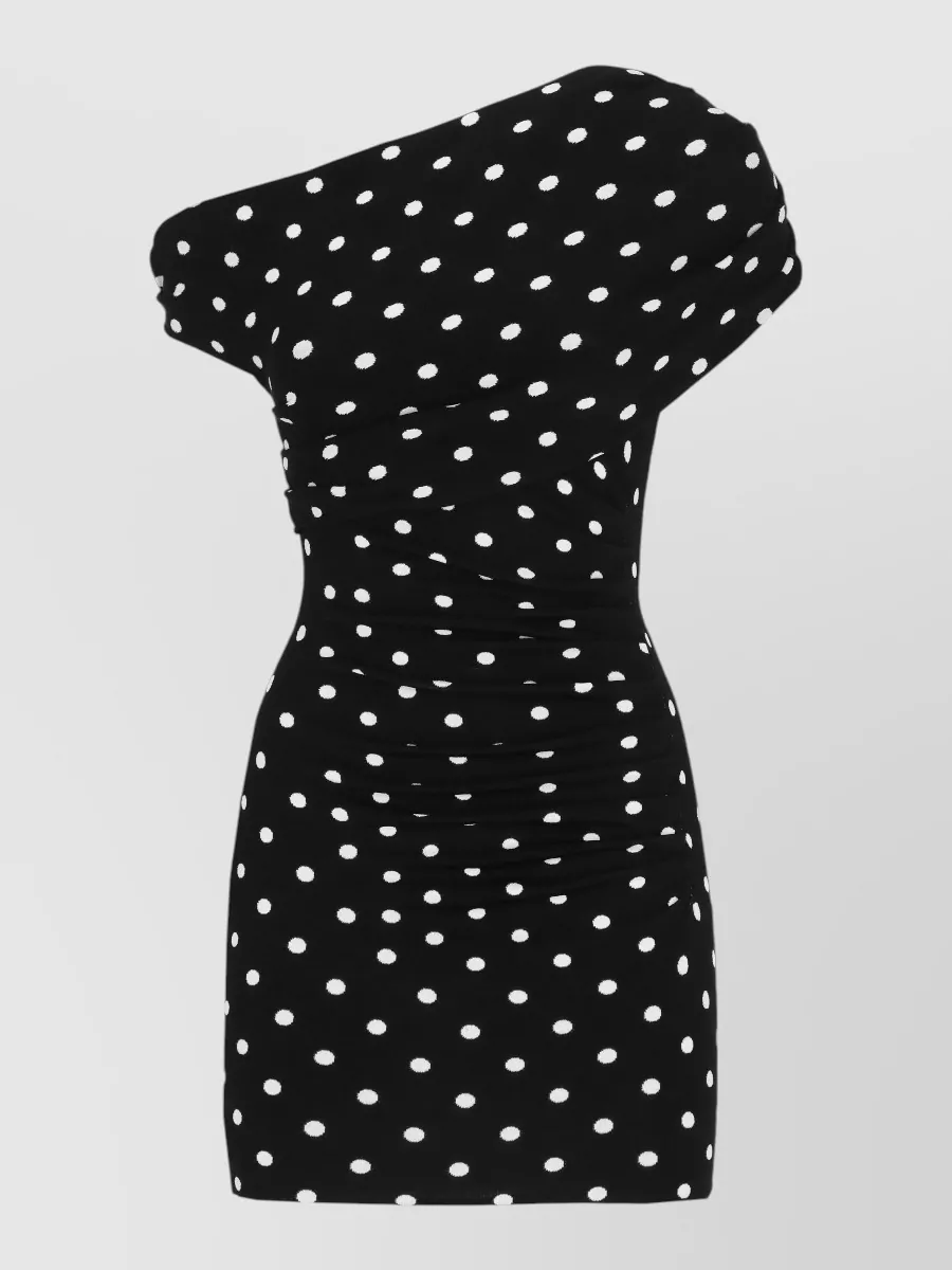 one shoulder polka dot ruched dress