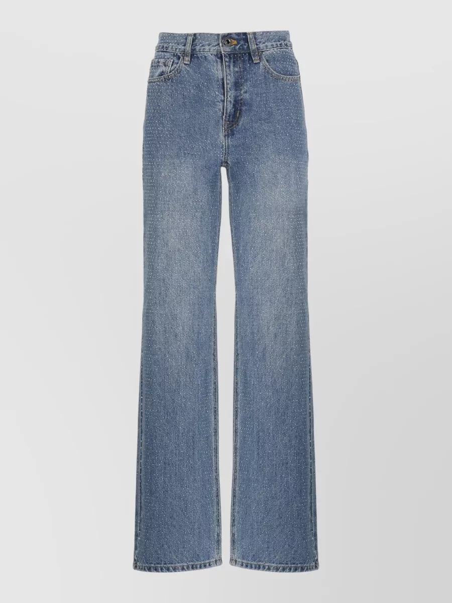 Self-Portrait wide leg rhinestone pattern denim trousers