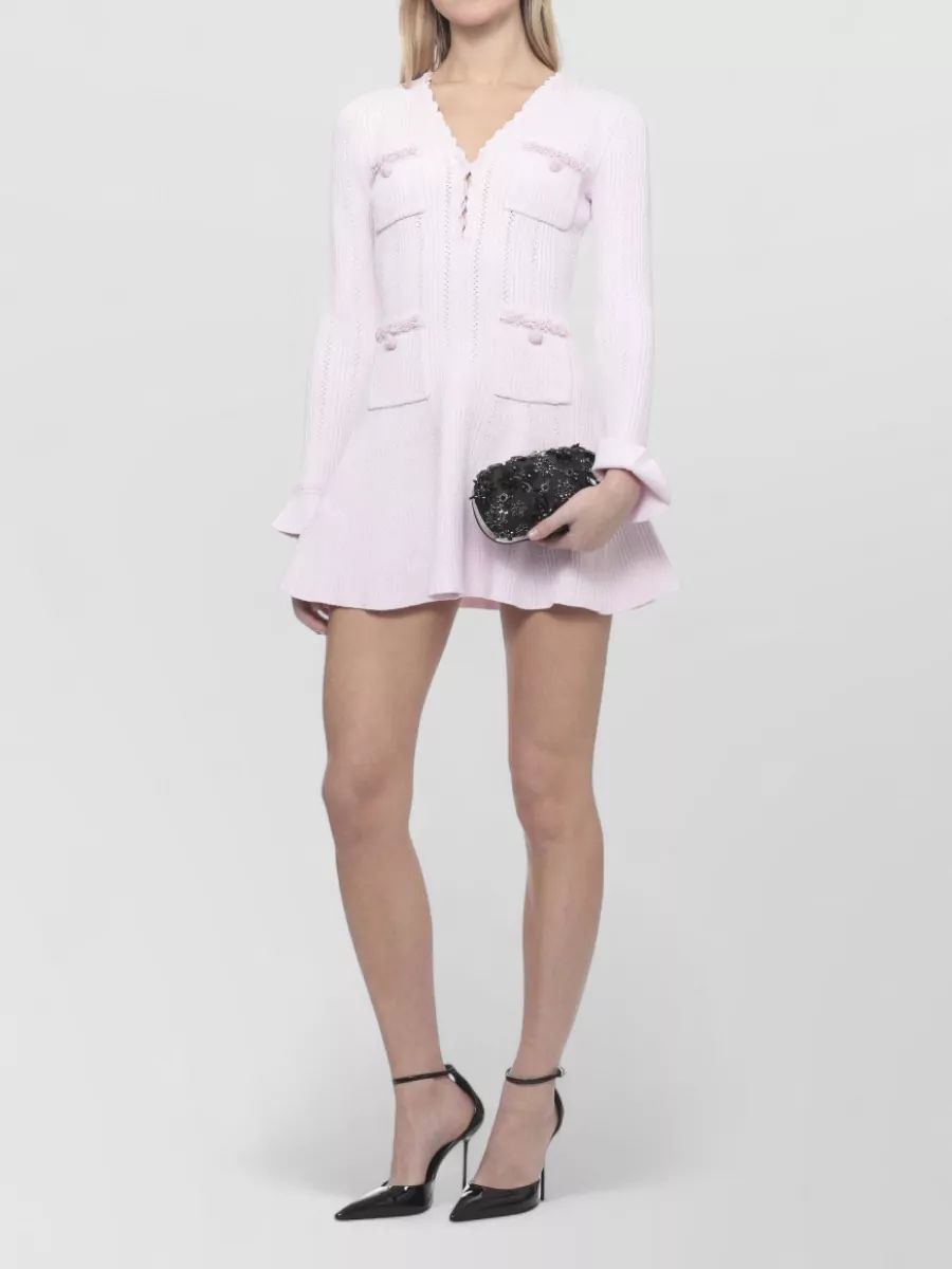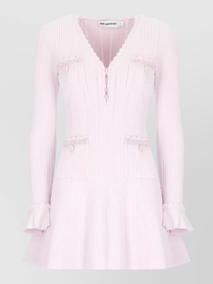 Self-Portrait knee length dress v neckline long sleeves