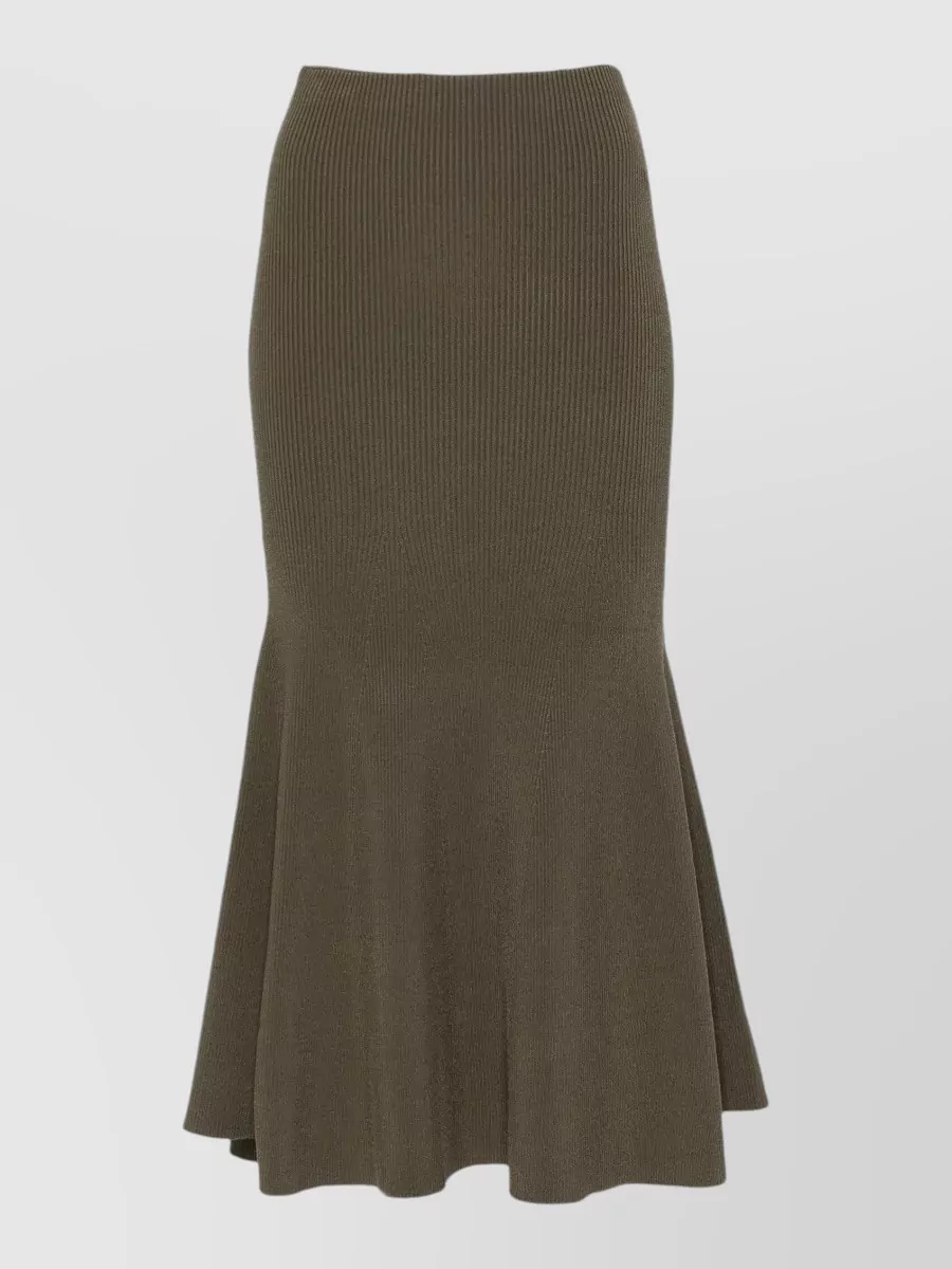 knit midi skirt high waist ribbed waistband