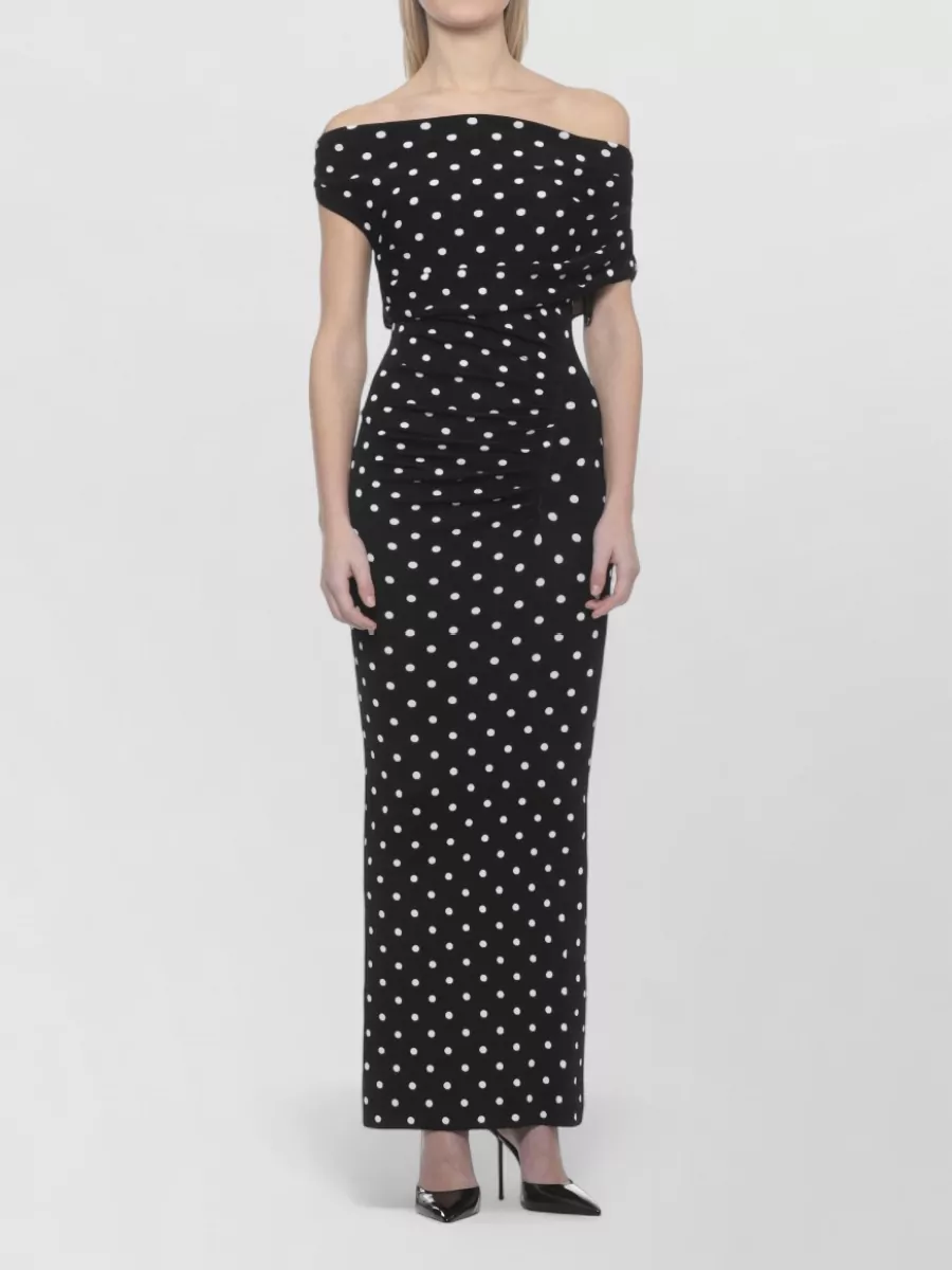 one shoulder ruched maxi dress polka dots