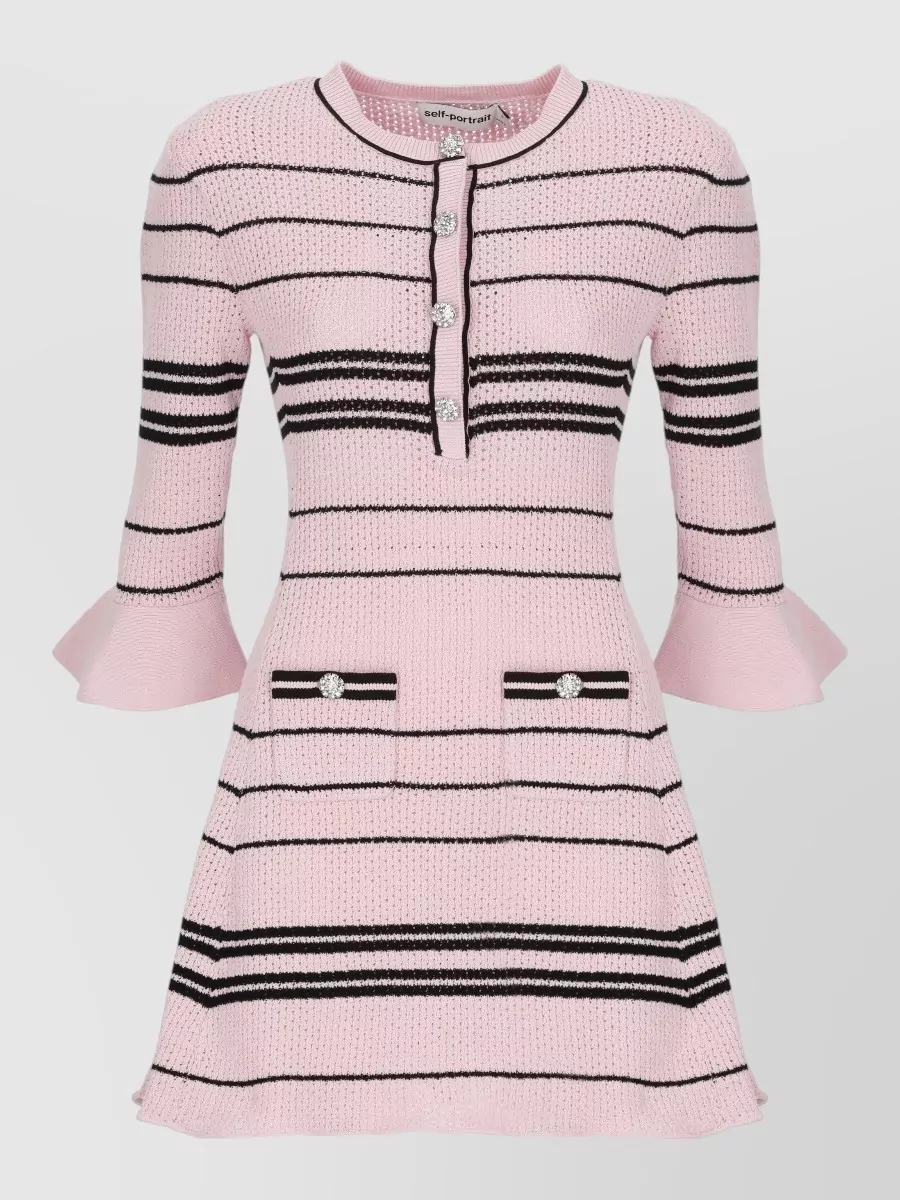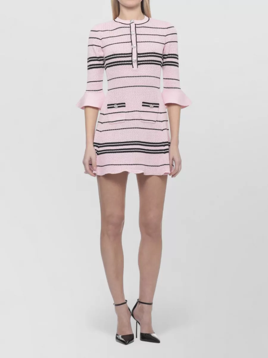 Self-Portrait knit dress knee length striped pattern pockets