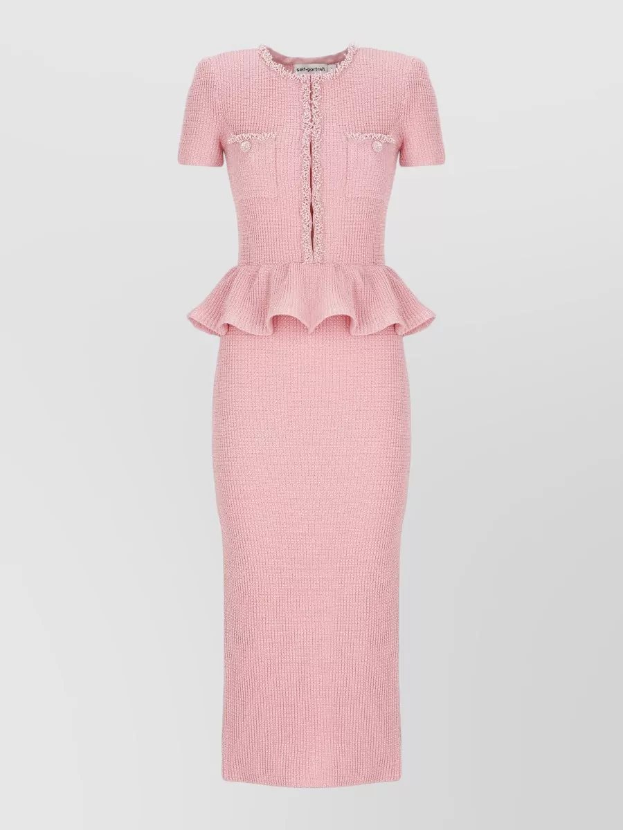 Self-Portrait knee length dress peplum detail buttons
