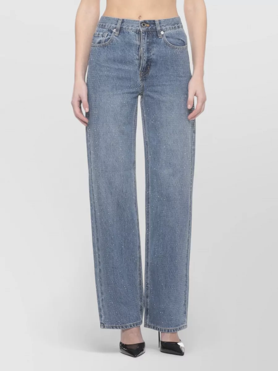 wide leg rhinestone pattern denim trousers