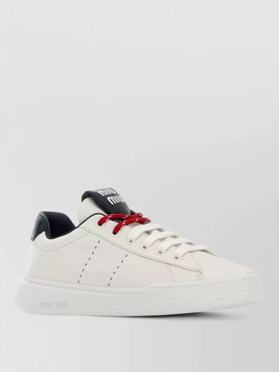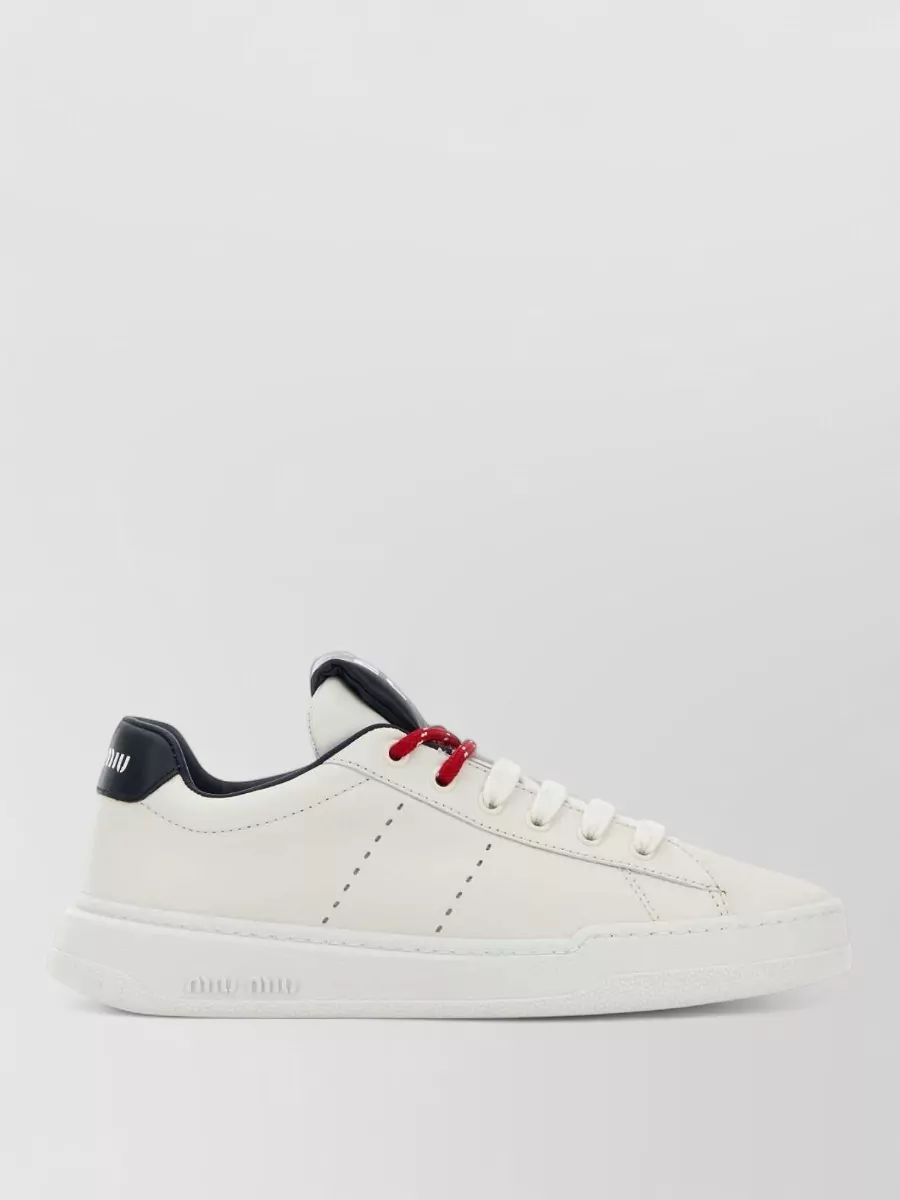 Miu Miu low-top leather sneakers featuring contrast heel tab