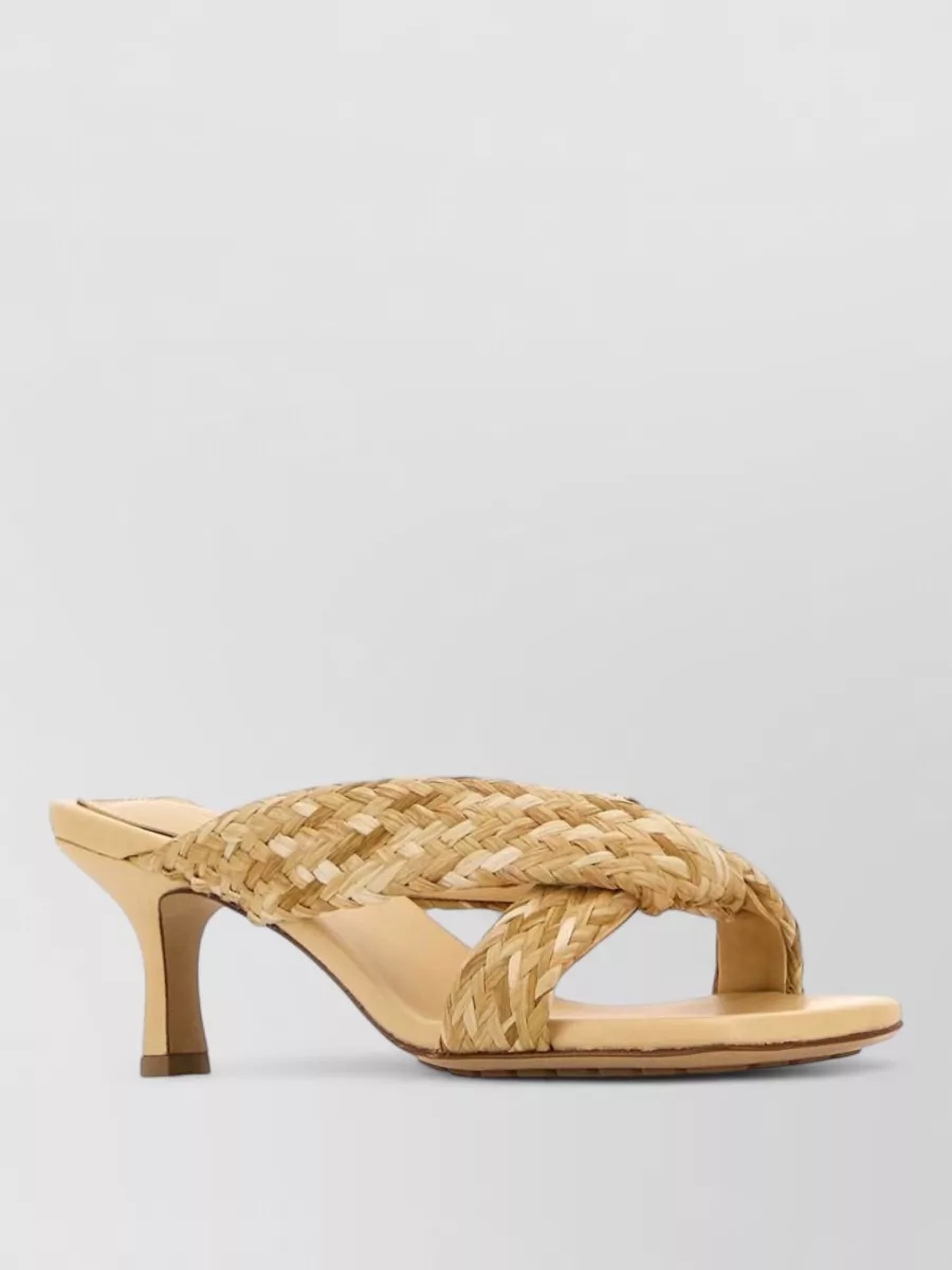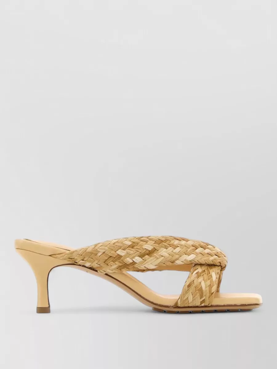 Bottega Veneta riva raffia mules open toe kitten heel