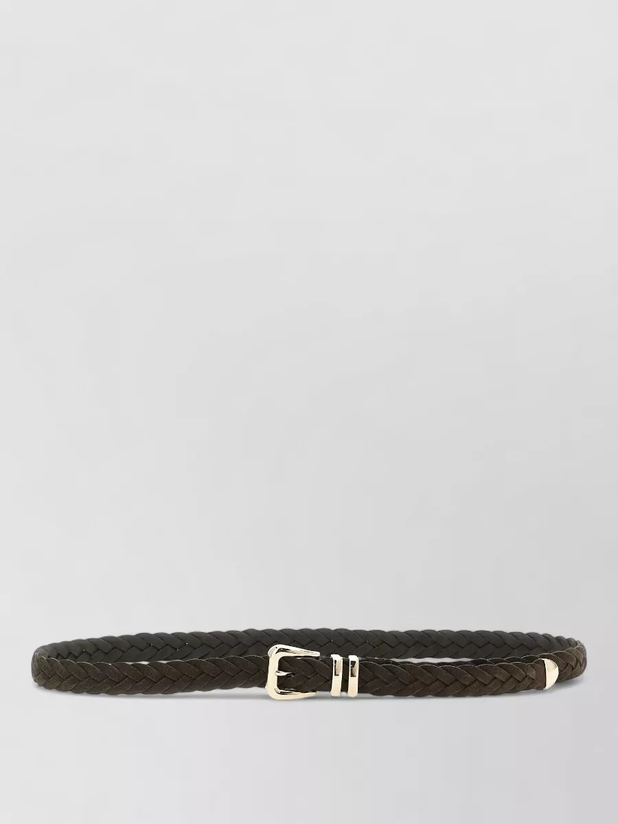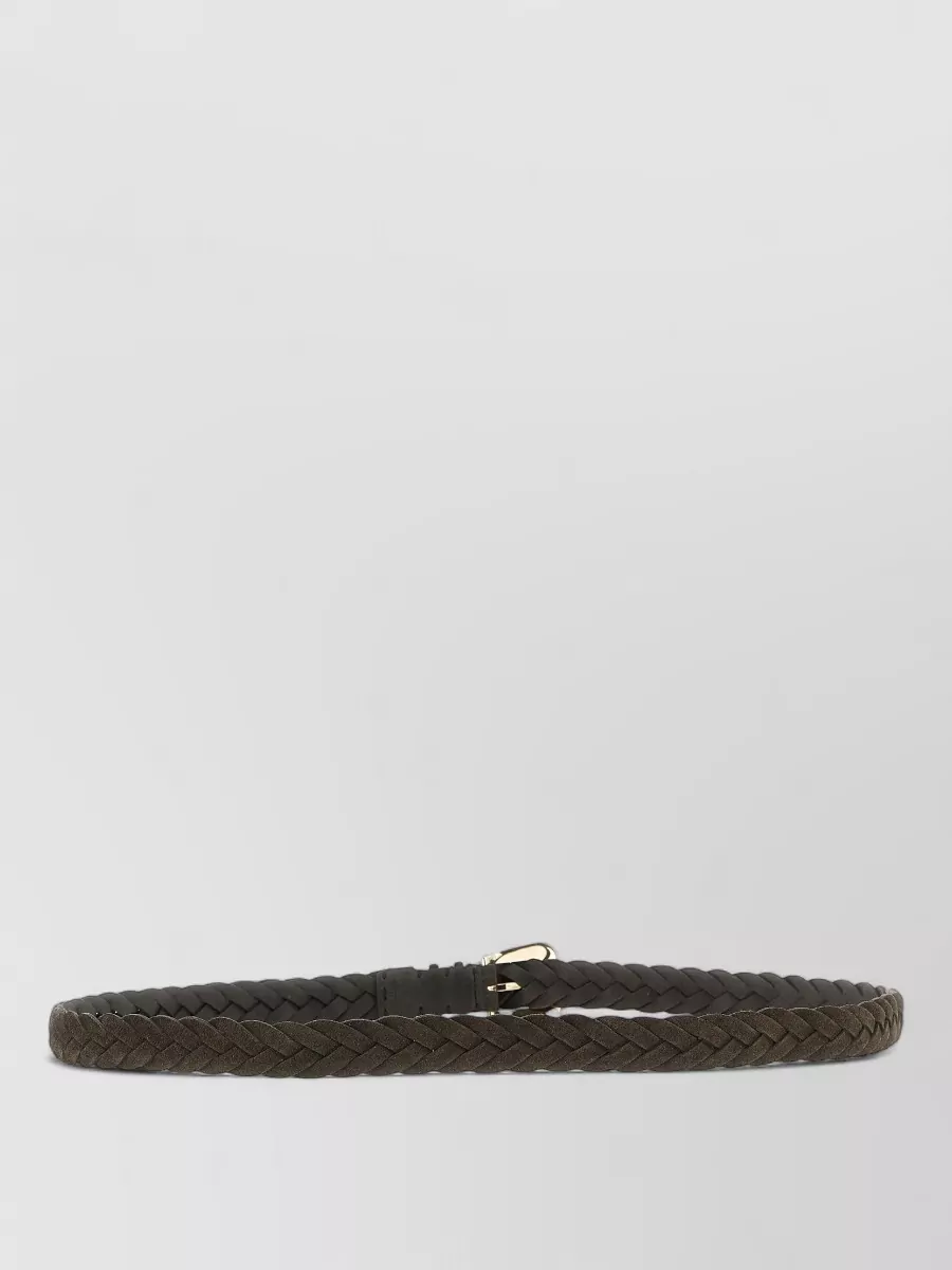 Brunello Cucinelli suede woven belt with gold finish buckle