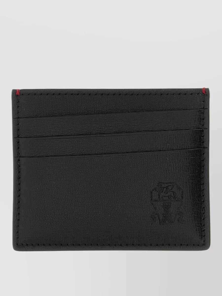 Brunello Cucinelli heraldic crest leather card wallet holder
