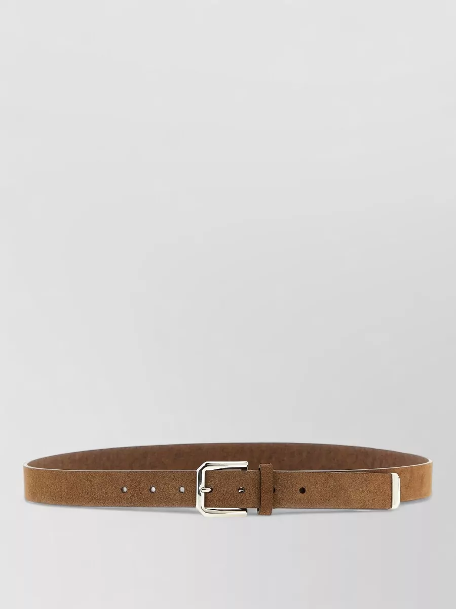 Brunello Cucinelli suede belt with metal buckle and multiple holes