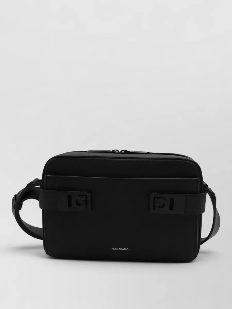 Ferragamo textured shoulder bag adjustable strap front pocket