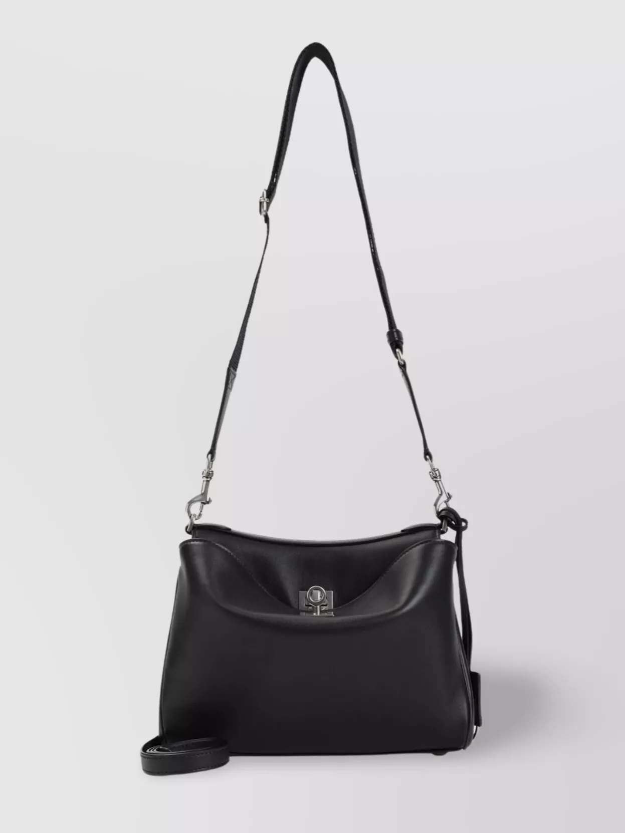 leather shoulder bag with adjustable strap and chain detail