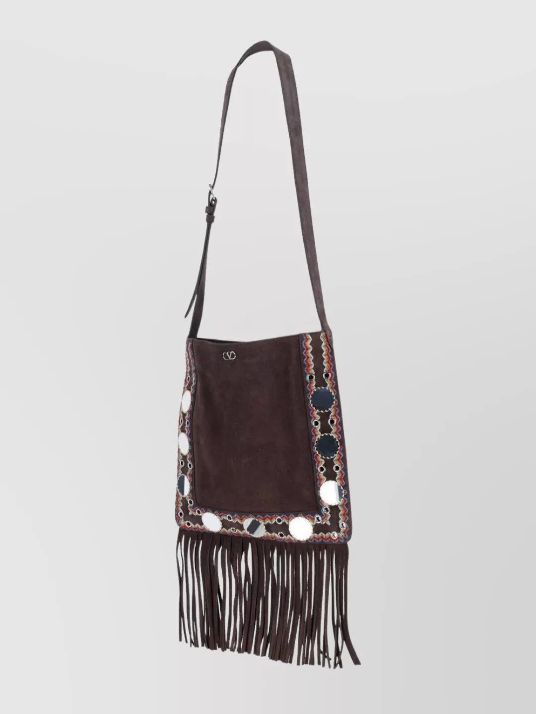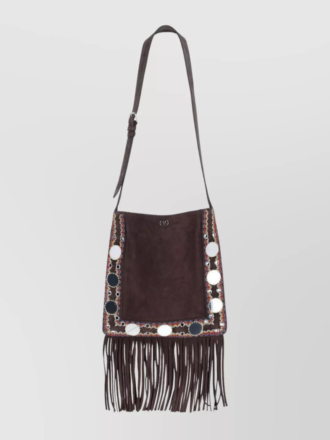 Valentino Garavani suede fringe shoulder bag with adjustable strap