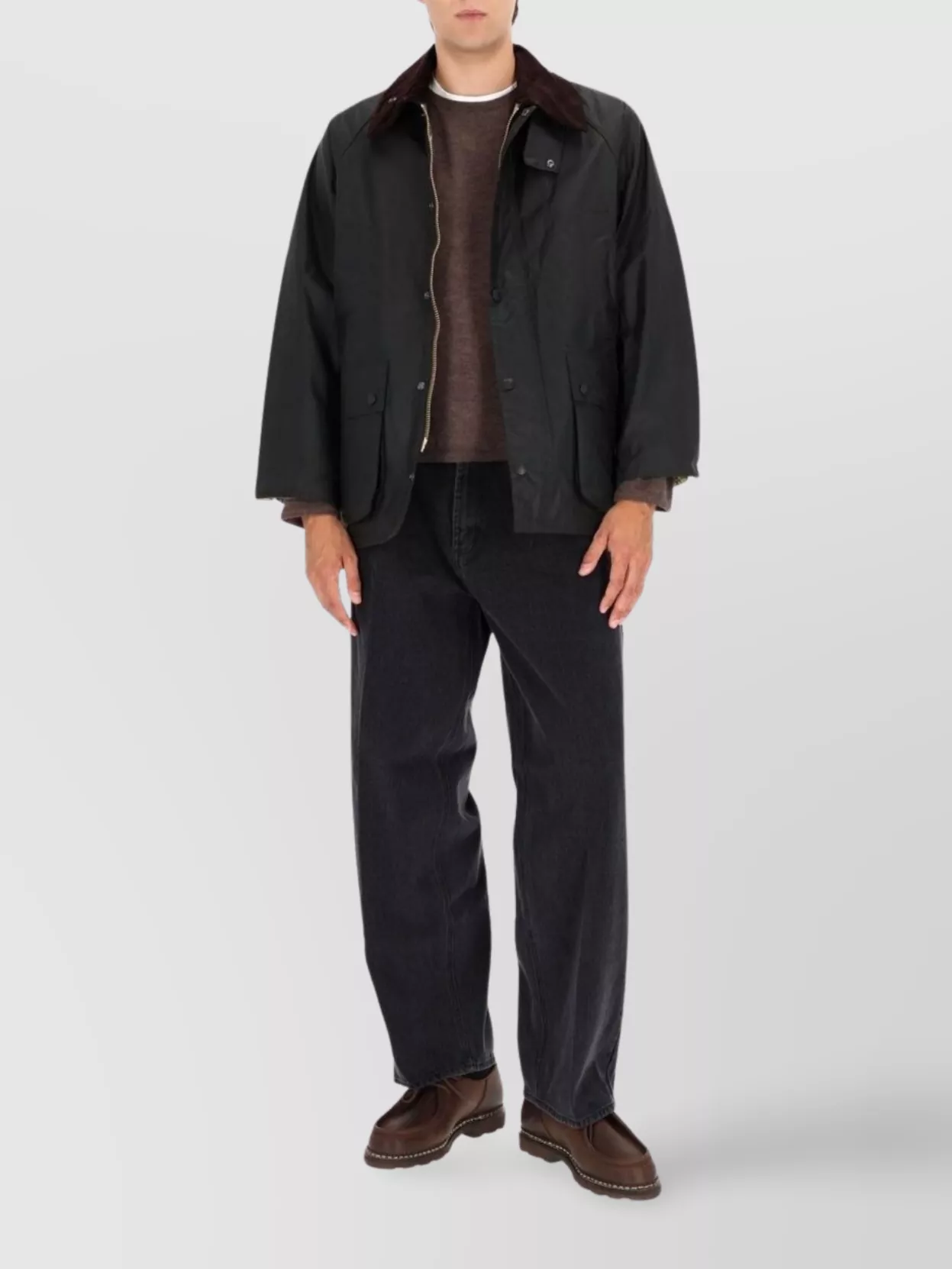 Barbour stylish outerwear featuring corduroy collar and flap pockets
