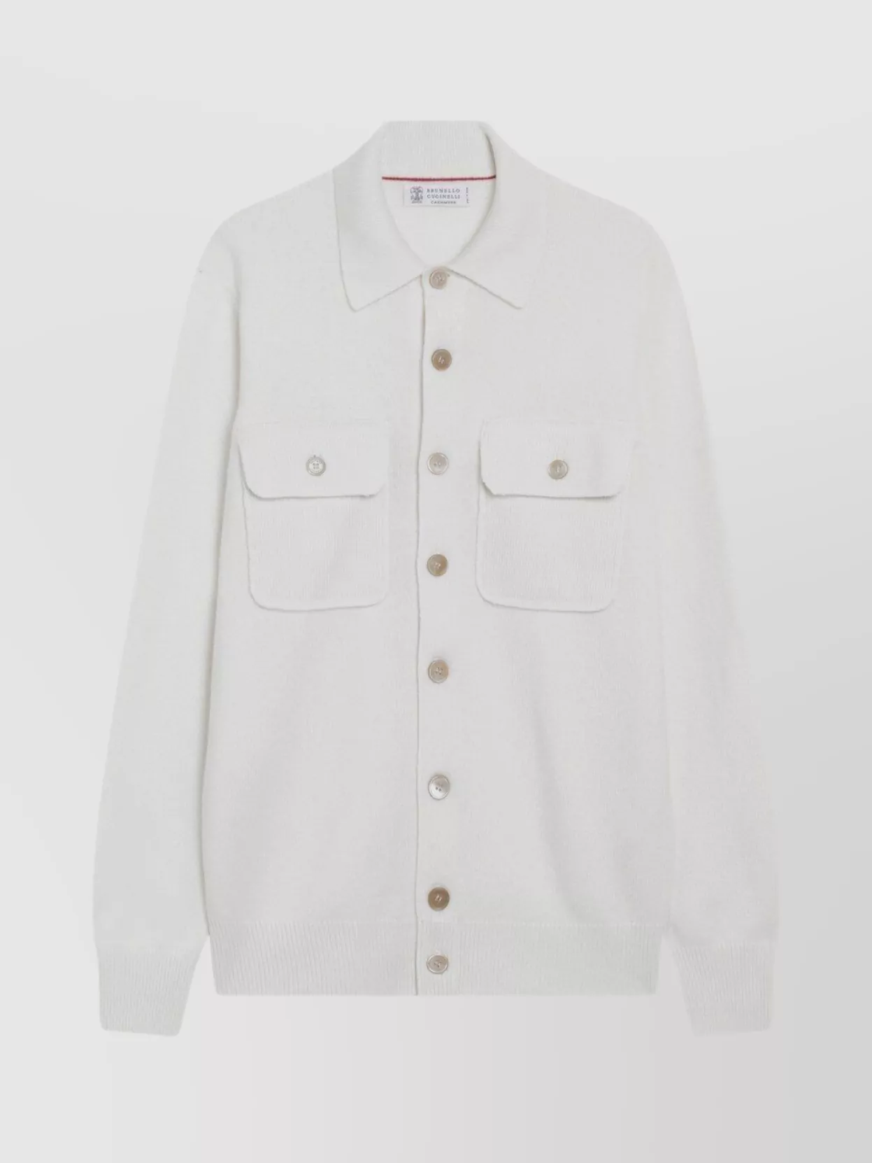 Brunello Cucinelli cashmere cardigan with chest pockets and long sleeves