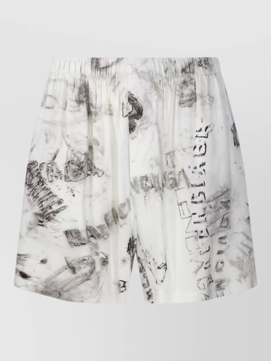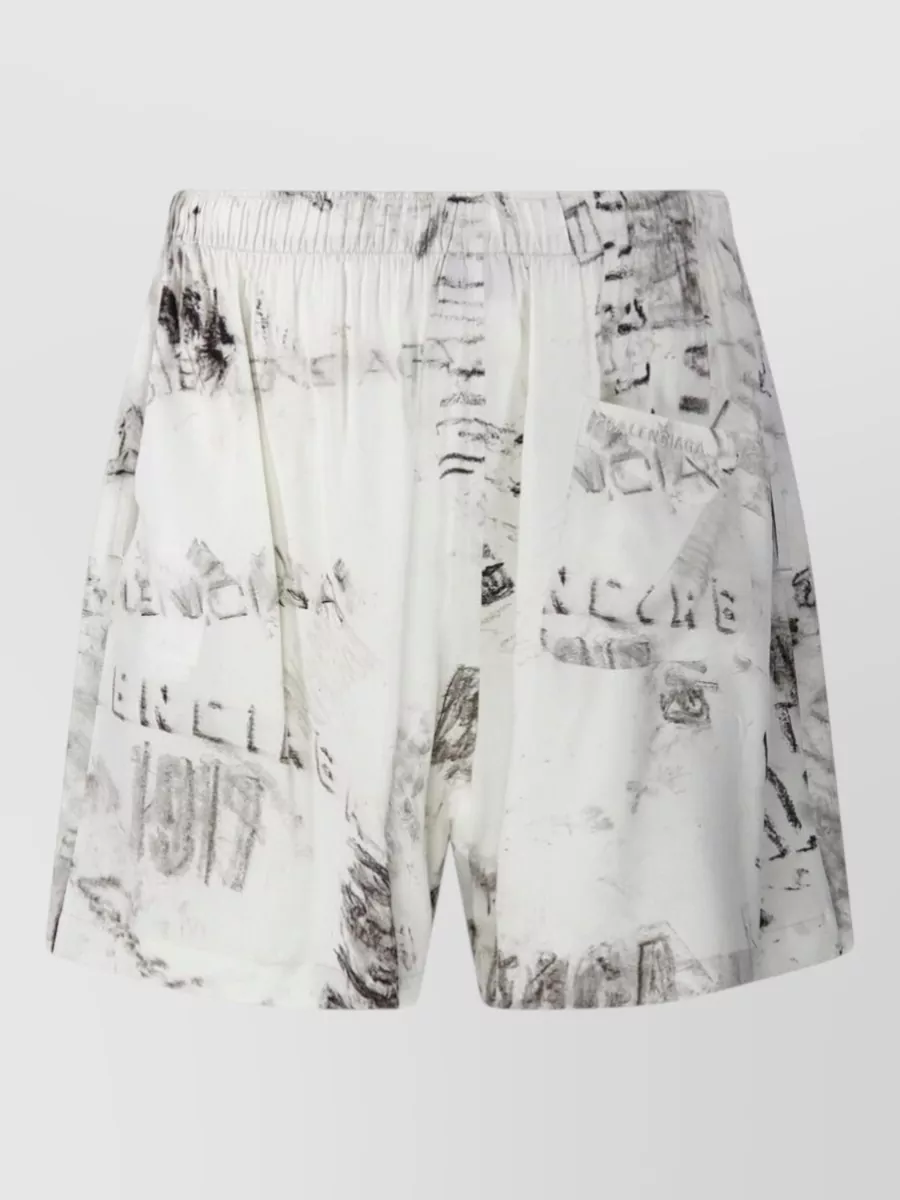 Balenciaga nylon silk graphic print shorts side pockets