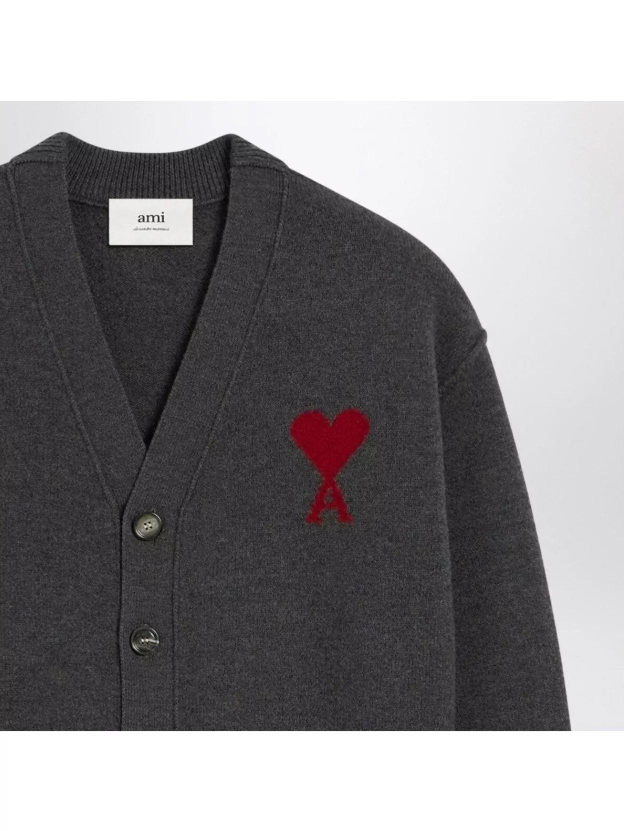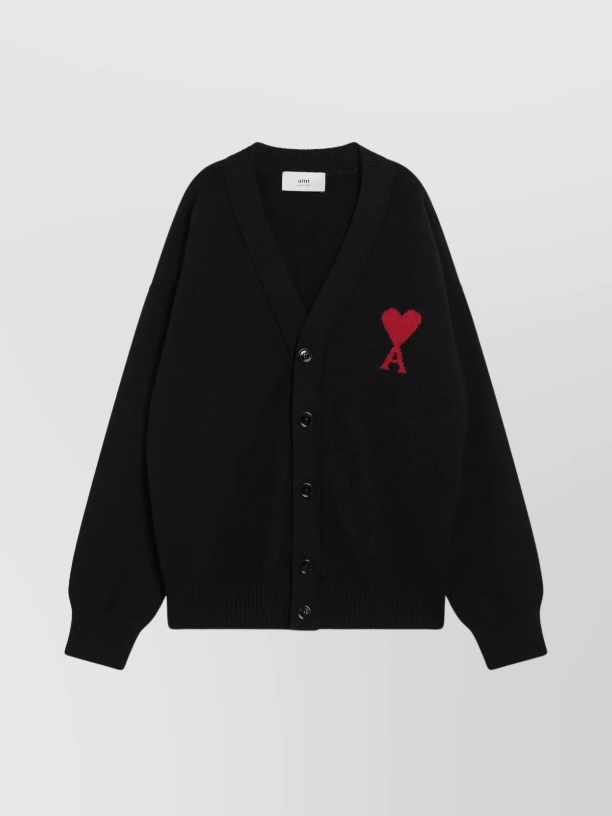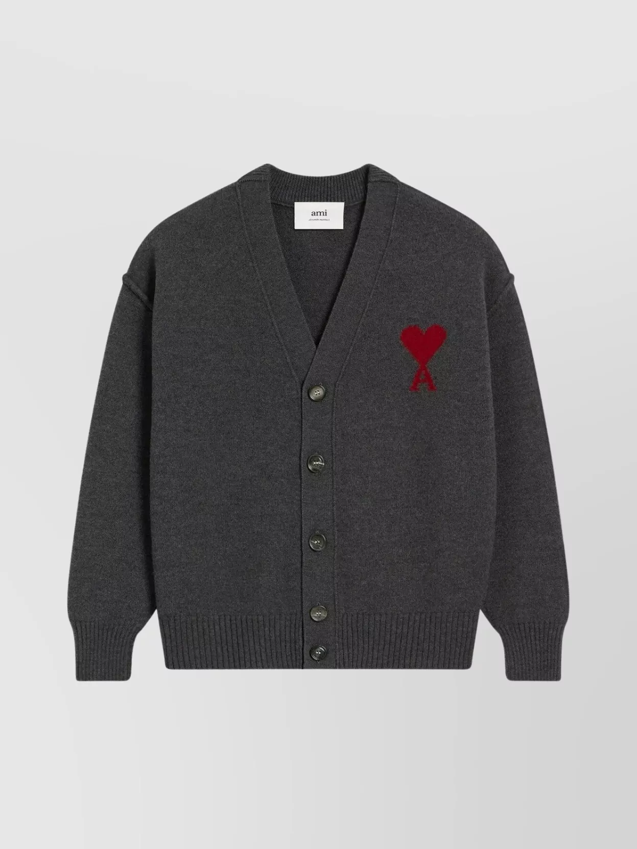 Ami Paris heart cardigan with ribbed cuffs and hem