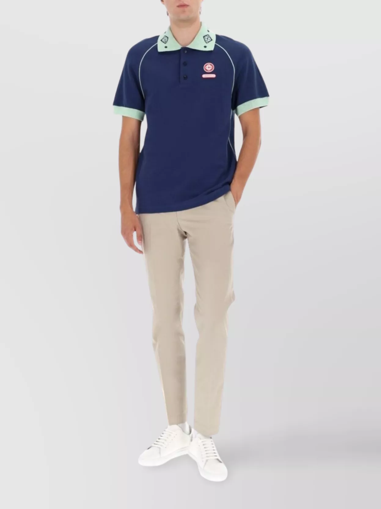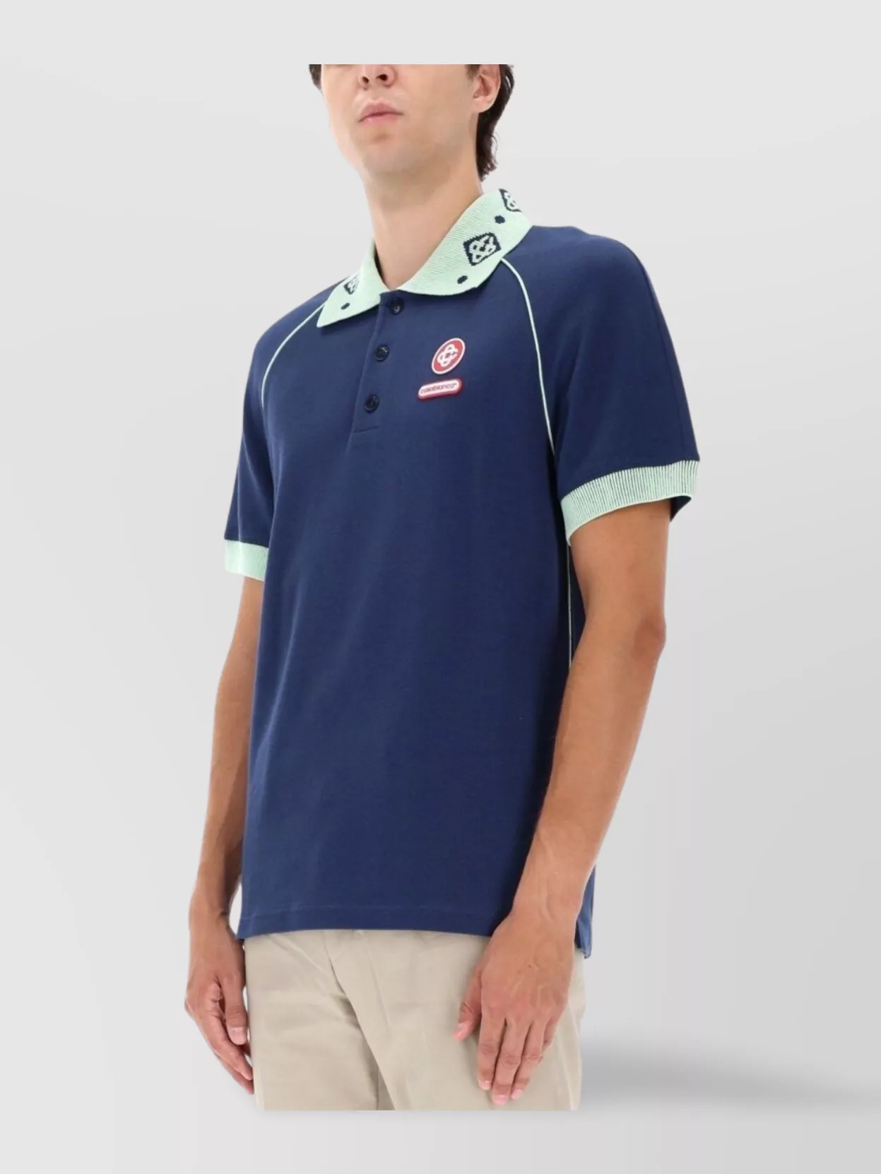 Casablanca contrast collar raglan short sleeve polo