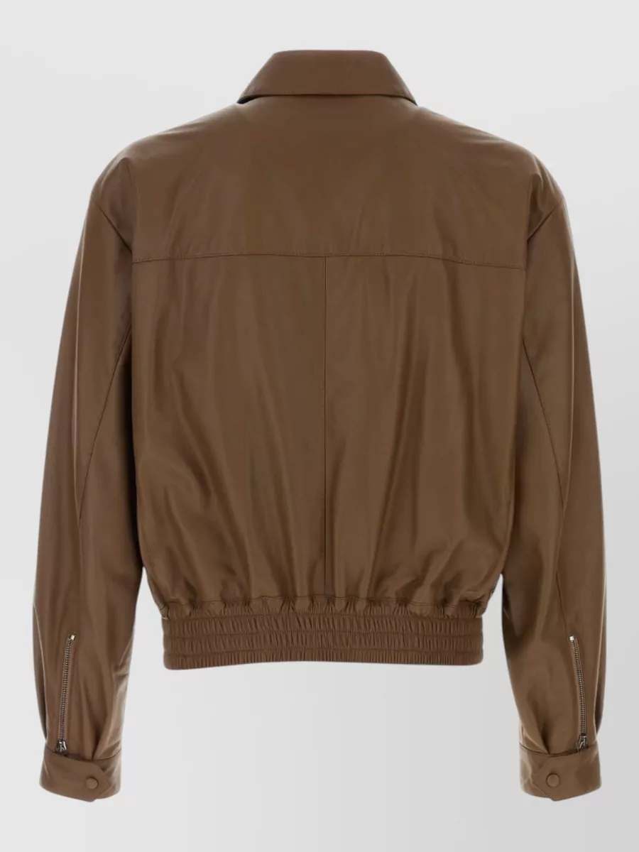 leather jacket collared design elasticated hem
