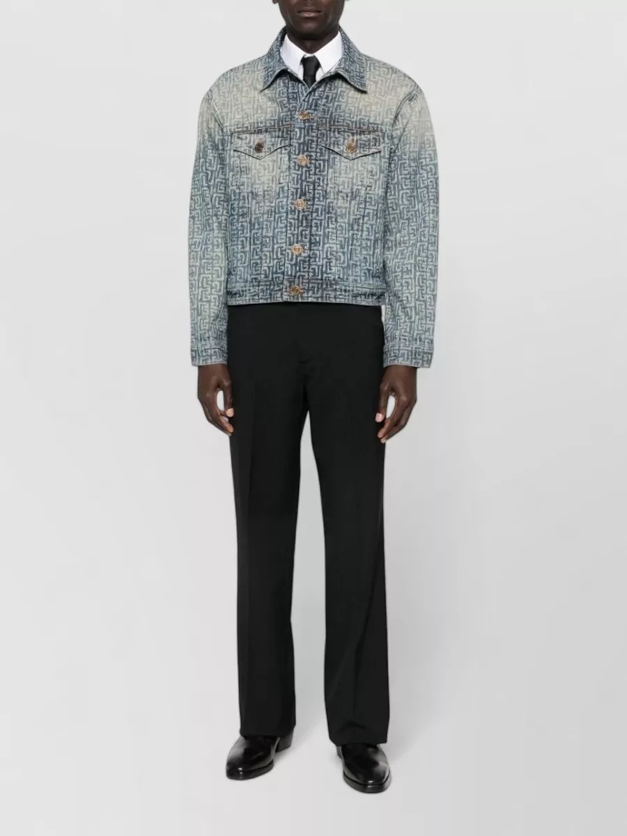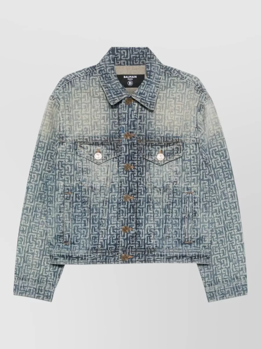 Balmain denim blazer chest pockets faded effect