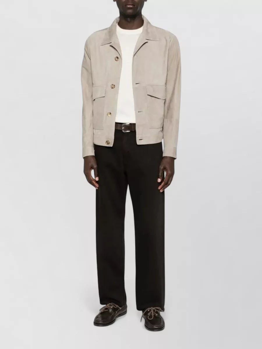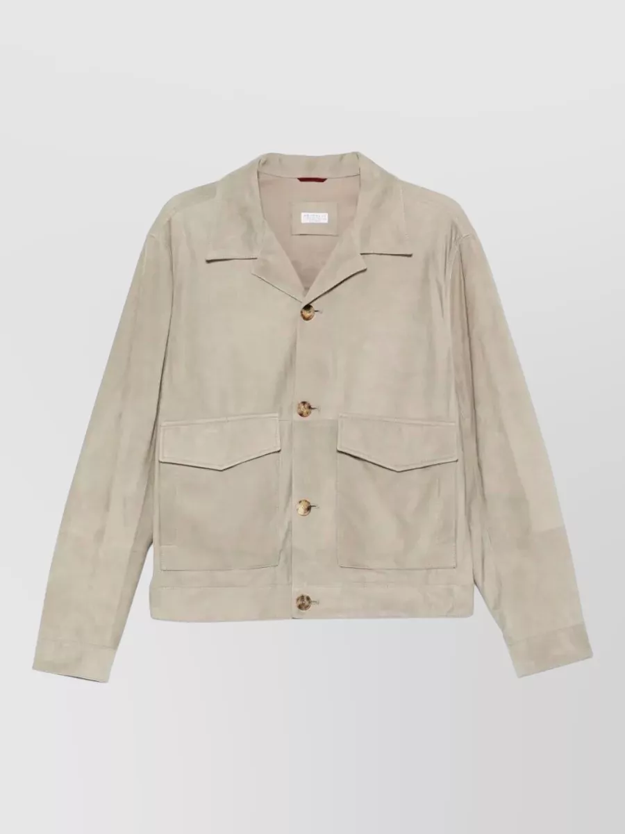 Brunello Cucinelli suede collared jacket long sleeves flap pockets