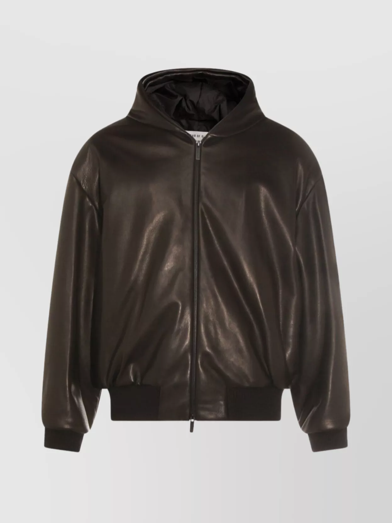 Fear Of God hooded leather jacket with ribbed cuffs and hem