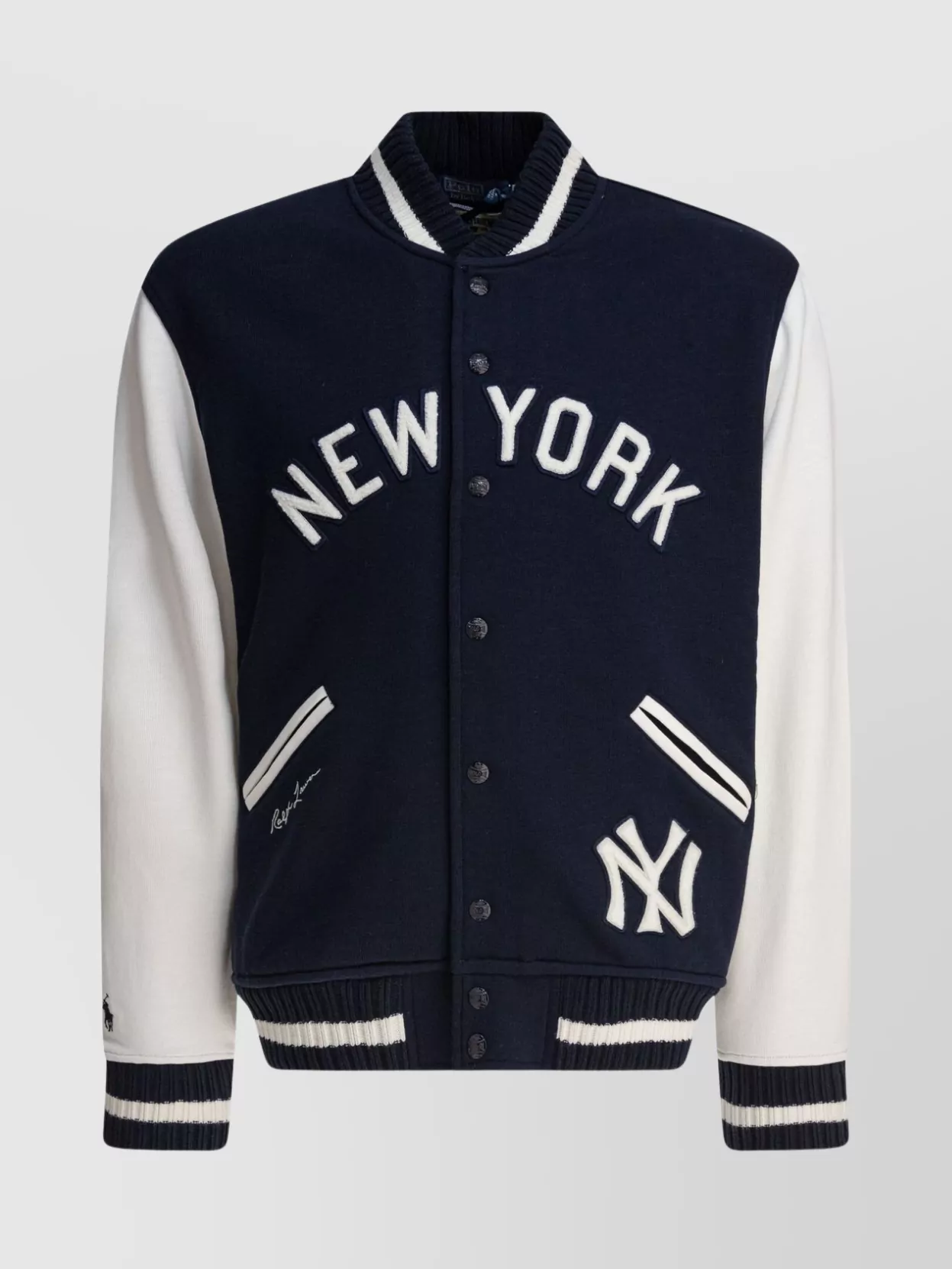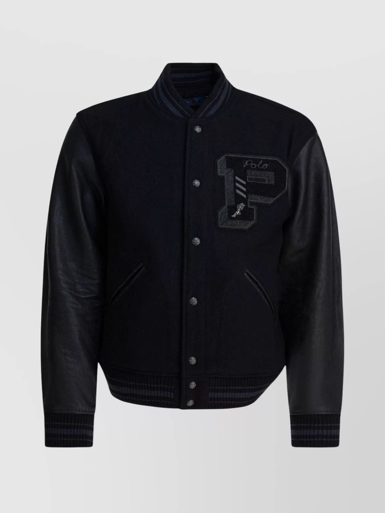 Polo Ralph Lauren wool blend varsity jacket with leather sleeves
